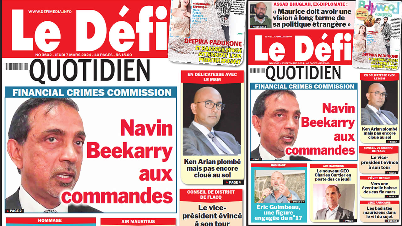 ? Voici la Une du Défi Quotidien. Le journal est en vente à Rs 15 l'exemplaire aux endroits habituels (supermarchés, boutiques, tabagies, superettes). Bonne lecture !