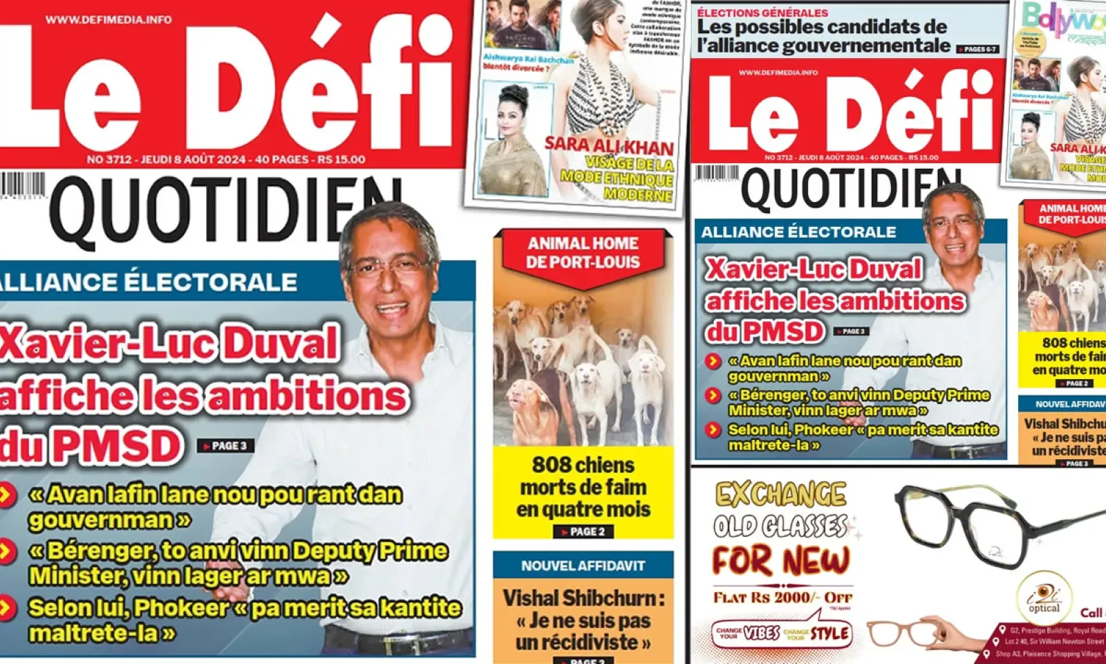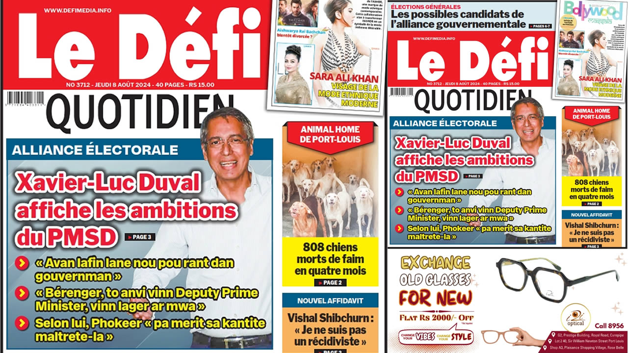 ? Voici la Une du Défi Quotidien. Le journal est en vente à Rs 15 l'exemplaire aux endroits habituels (supermarchés, boutiques, tabagies, superettes). Bonne lecture !