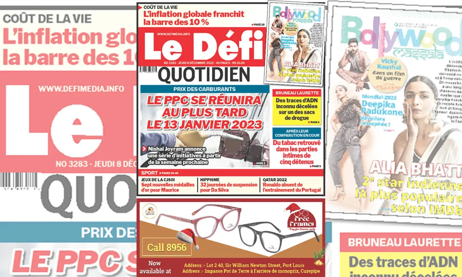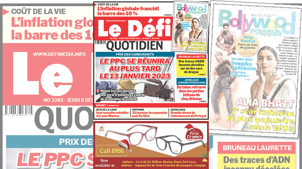 ? Voici la Une du Défi Quotidien. Le journal est en vente à Rs 15 l'exemplaire aux endroits habituels (supermarchés, boutiques, tabagies, superettes). Bonne lecture !