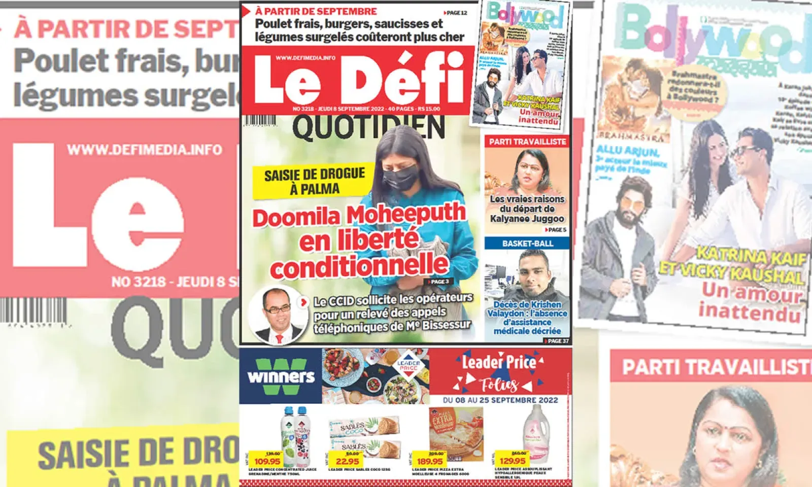 ? Voici la Une du Défi Quotidien. Le journal est en vente à Rs 15 l'exemplaire aux endroits habituels (supermarchés, boutiques, tabagies, superettes). Bonne lecture !