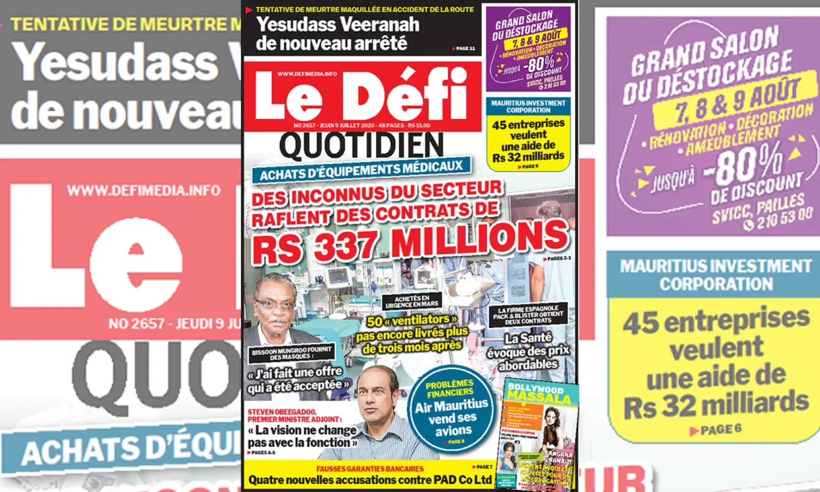 Ces e-Papers sont disponibles depuis le mardi 24 mars 2020 à Rs 10 seulement l’exemplaire et ce, indépendamment de la publication : Le Défi Quotidien et Le Défi Plus.
