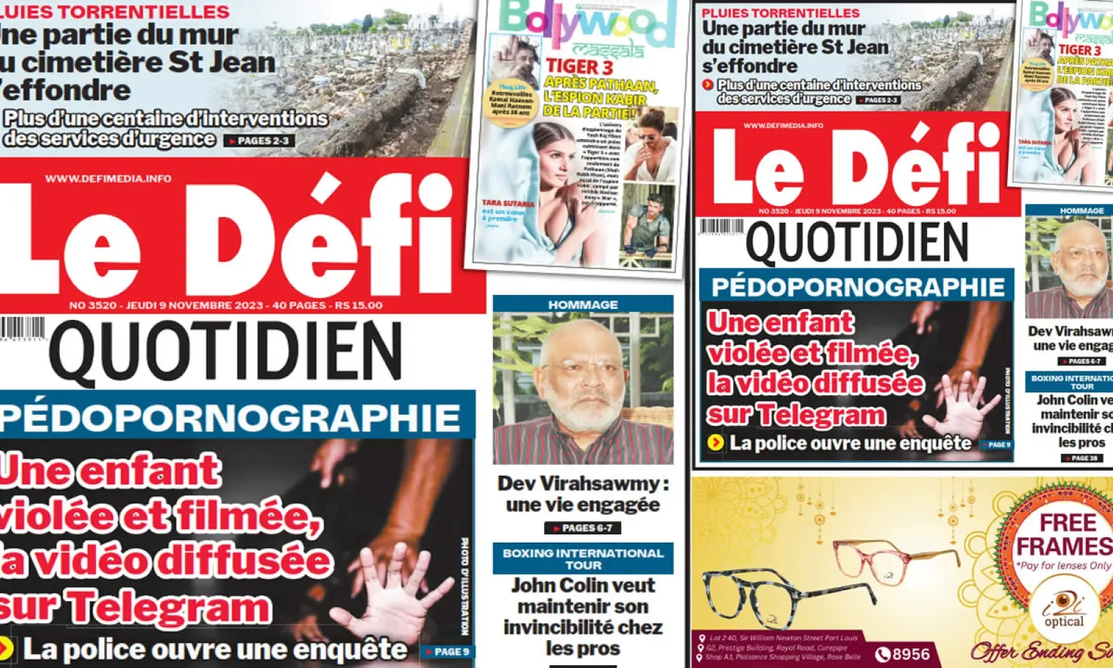 ? Voici la Une du Défi Quotidien. Le journal est en vente à Rs 15 l'exemplaire aux endroits habituels (supermarchés, boutiques, tabagies, superettes). Bonne lecture !
