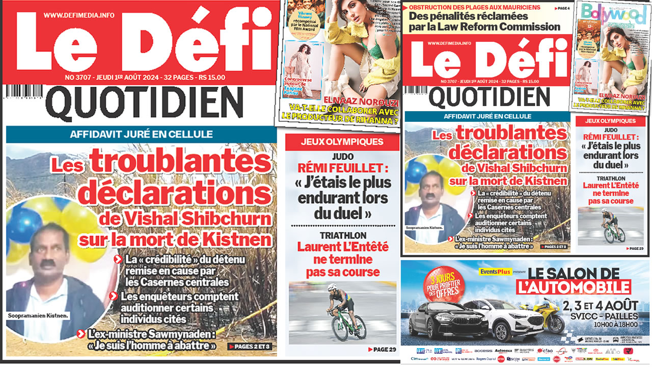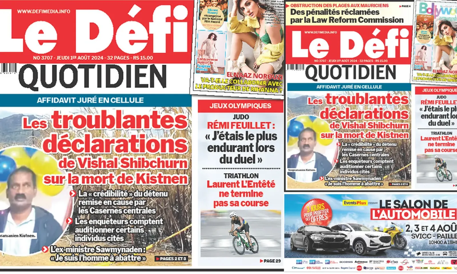 ? Voici la Une du Défi Quotidien. Le journal est en vente à Rs 15 l'exemplaire aux endroits habituels (supermarchés, boutiques, tabagies, superettes). Bonne lecture !