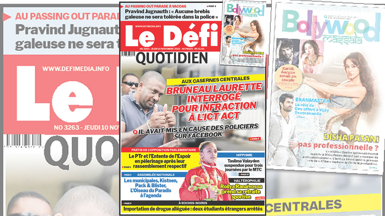 ? Voici la Une du Défi Quotidien. Le journal est en vente à Rs 15 l'exemplaire aux endroits habituels (supermarchés, boutiques, tabagies, superettes). Bonne lecture !