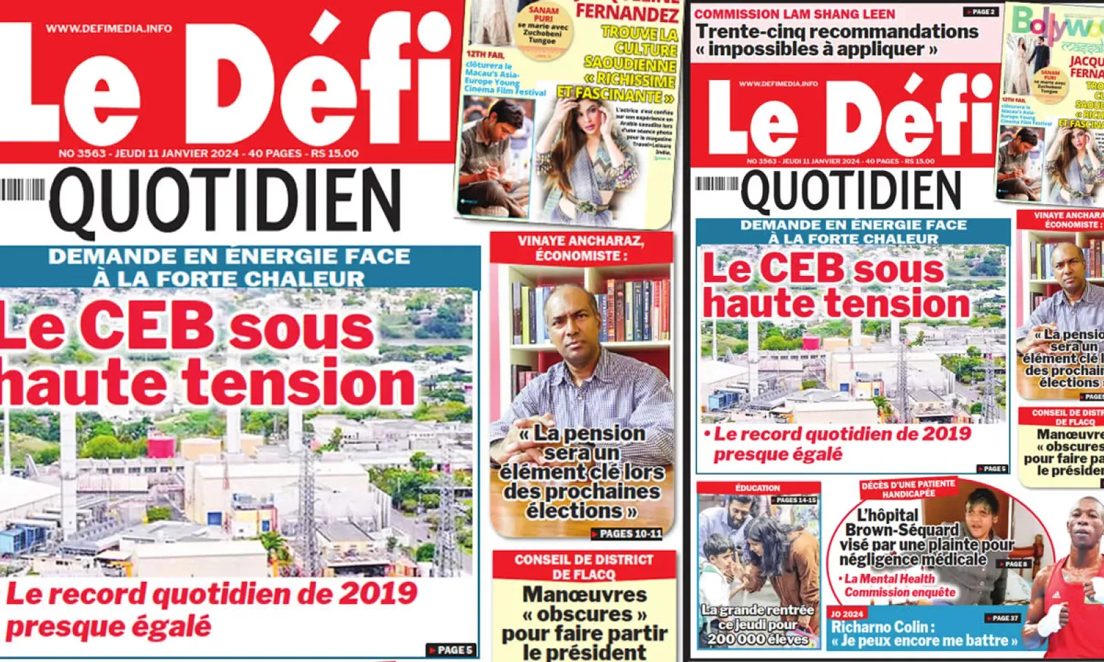 ? Voici la Une du Défi Quotidien. Le journal est en vente à Rs 15 l'exemplaire aux endroits habituels (supermarchés, boutiques, tabagies, superettes). Bonne lecture !