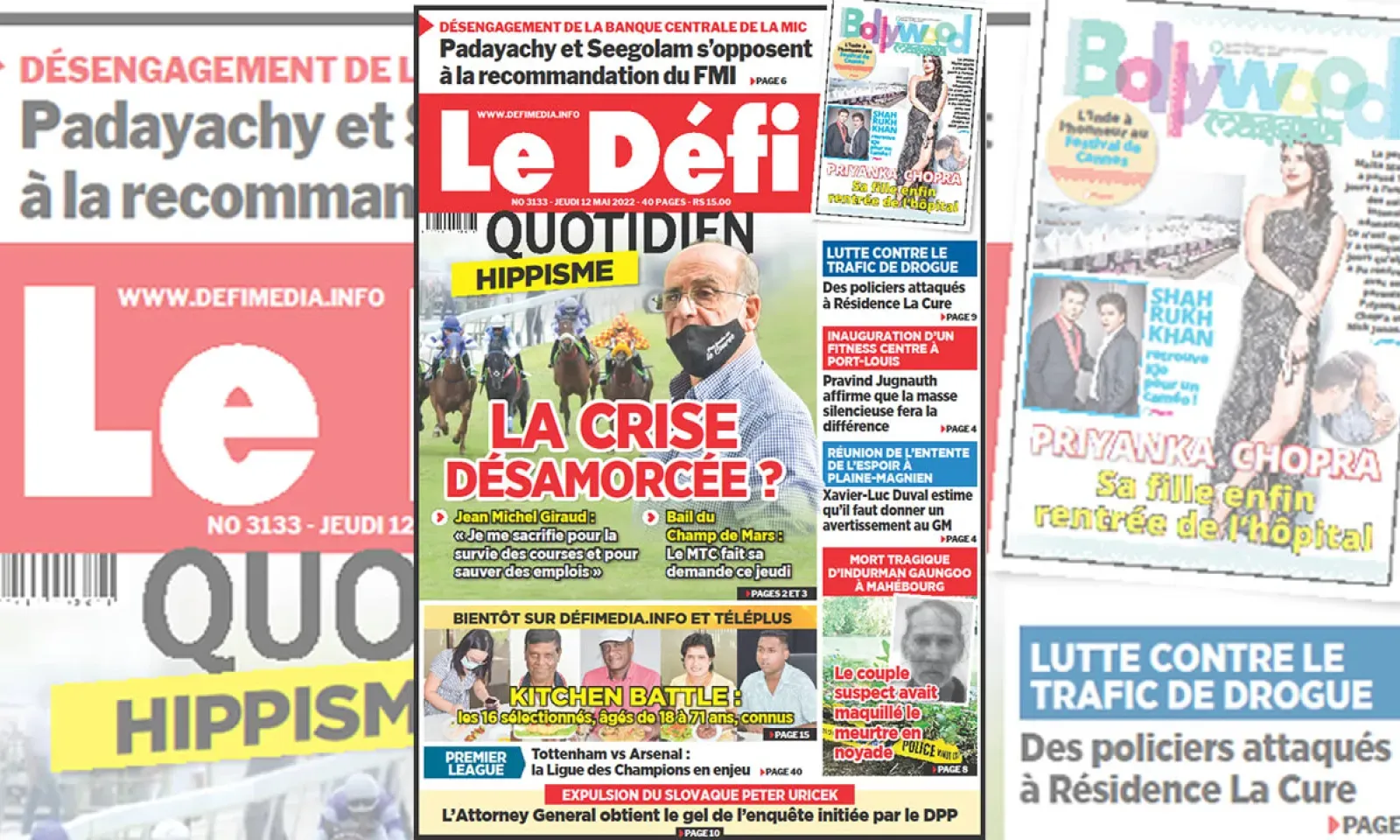 ? Voici la Une du Défi Quotidien. Le journal est en vente à Rs 15 l'exemplaire aux endroits habituels (supermarchés, boutiques, tabagies, superettes). Bonne lecture !
