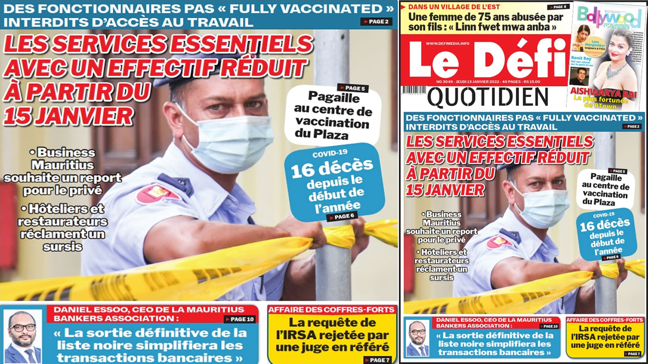 ? Voici la Une du Défi Quotidien. Le journal est en vente à Rs 15 l'exemplaire aux endroits habituels (supermarchés, boutiques, tabagies, superettes). Bonne lecture !