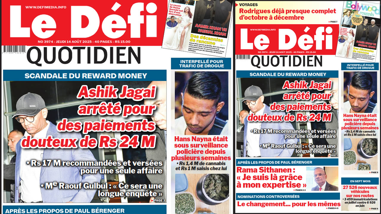 ? Voici la Une du Défi Quotidien. Le journal est en vente à Rs 15 l'exemplaire aux endroits habituels (supermarchés, boutiques, tabagies, superettes). Bonne lecture !