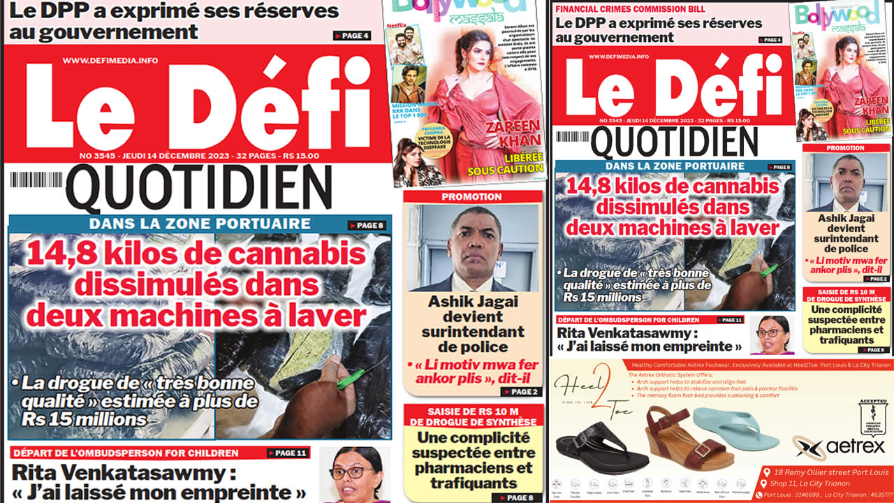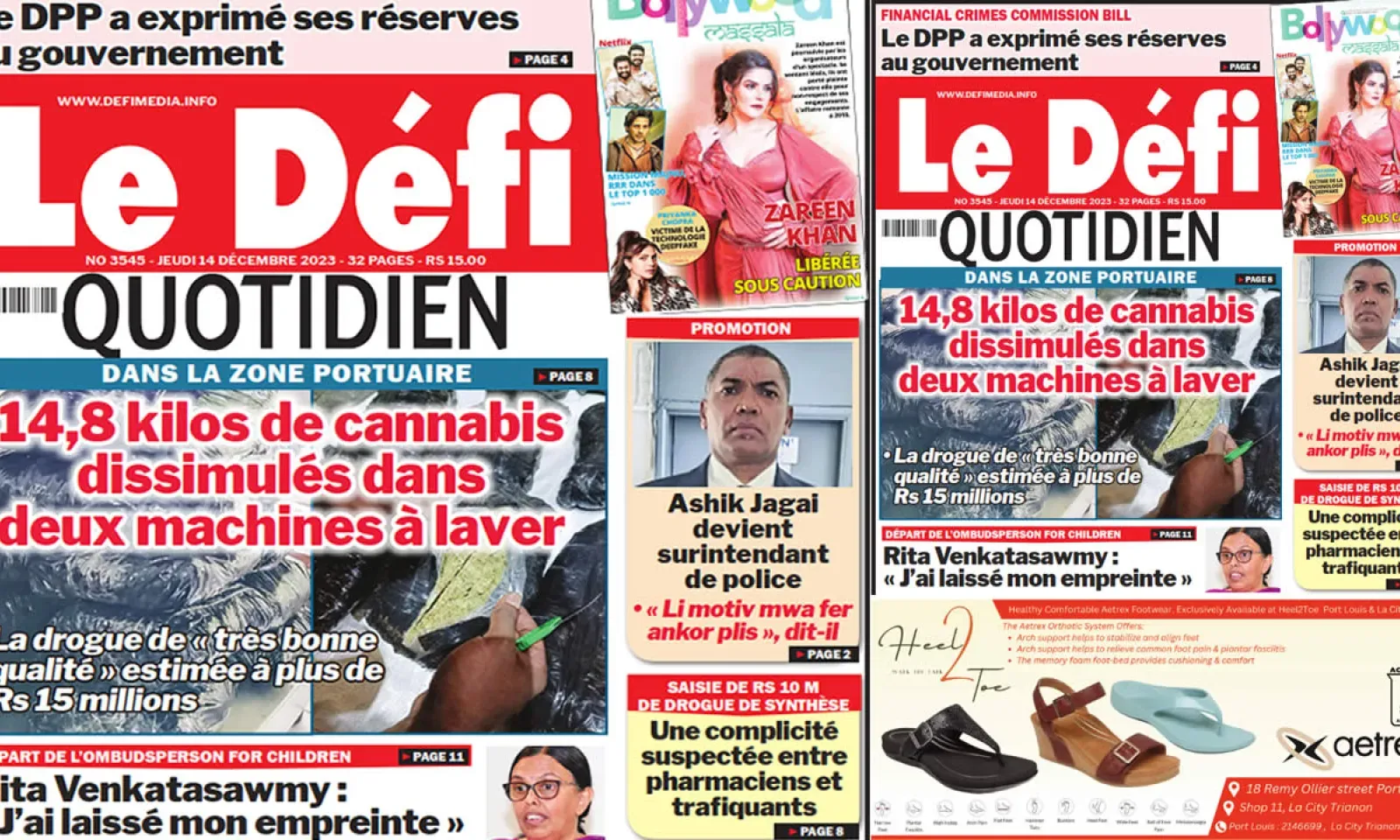 ? Voici la Une du Défi Quotidien. Le journal est en vente à Rs 15 l'exemplaire aux endroits habituels (supermarchés, boutiques, tabagies, superettes). Bonne lecture !