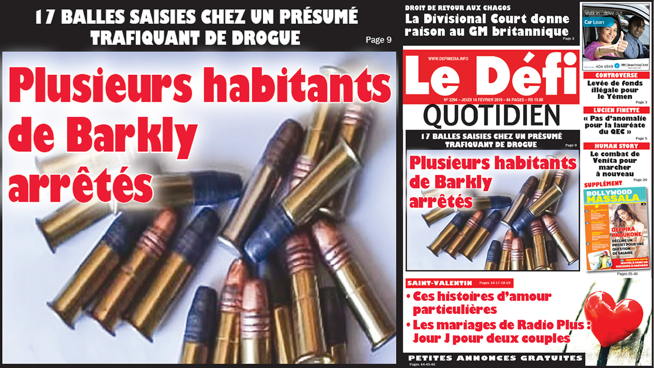 Les multiples opérations menées par la brigade antidrogue de Rose-Hill à Résidence Barkly ont débouché sur une surprenante découverte le matin du mercredi 13 février. Alors que la police faisait un raid au domicile de Harold Patrick T., 58 ans, pour retrouver des stupéfiants, 17 balles de calibre .22 ont été découvertes.