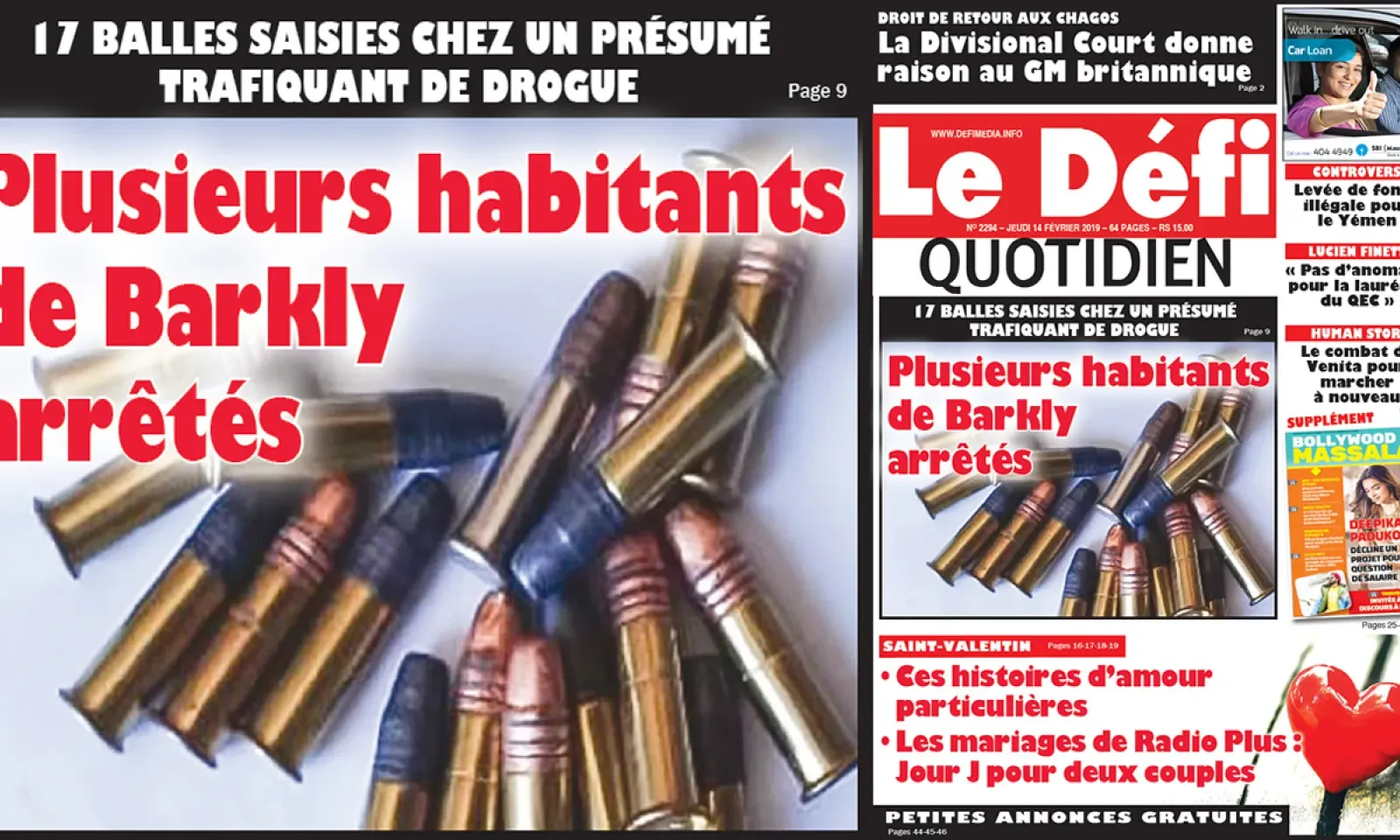 Voici la Une du Defi Quotidien de ce jeudi 14 février 2019