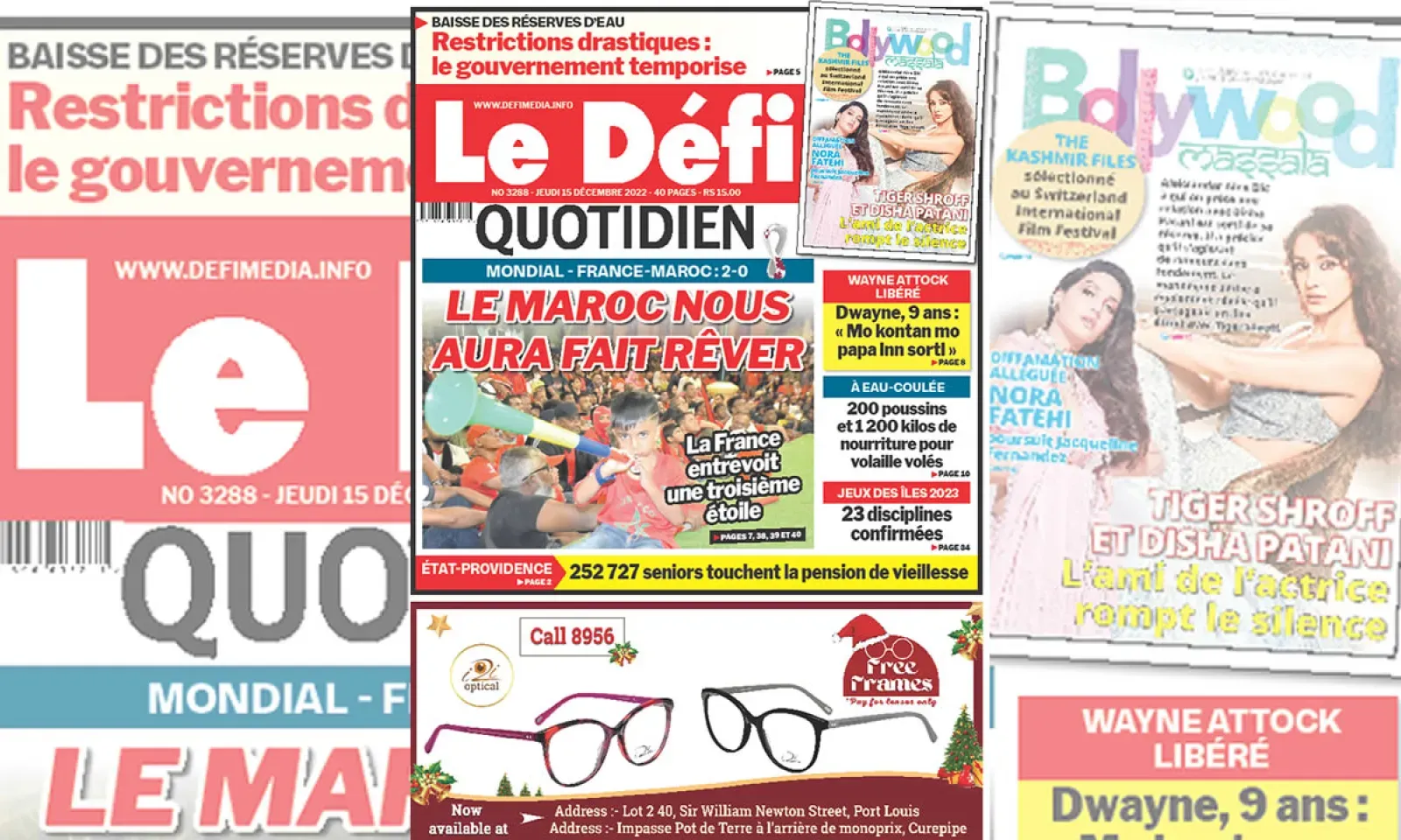 ? Voici la Une du Défi Quotidien. Le journal est en vente à Rs 15 l'exemplaire aux endroits habituels (supermarchés, boutiques, tabagies, superettes). Bonne lecture !