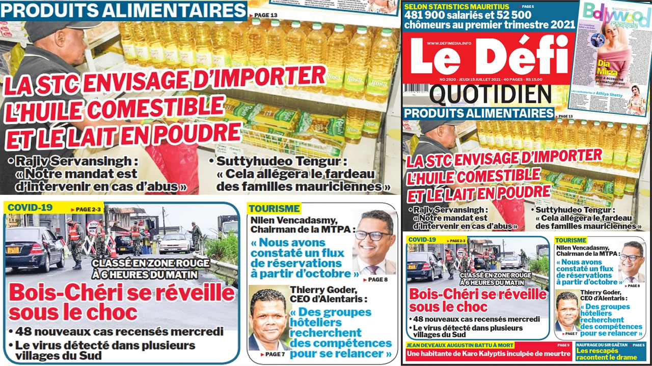 ? Voici la Une du Défi Quotidien. Le journal est en vente à Rs 15 l'exemplaire aux endroits habituels (supermarchés, boutiques, tabagies, superettes). Bonne lecture !