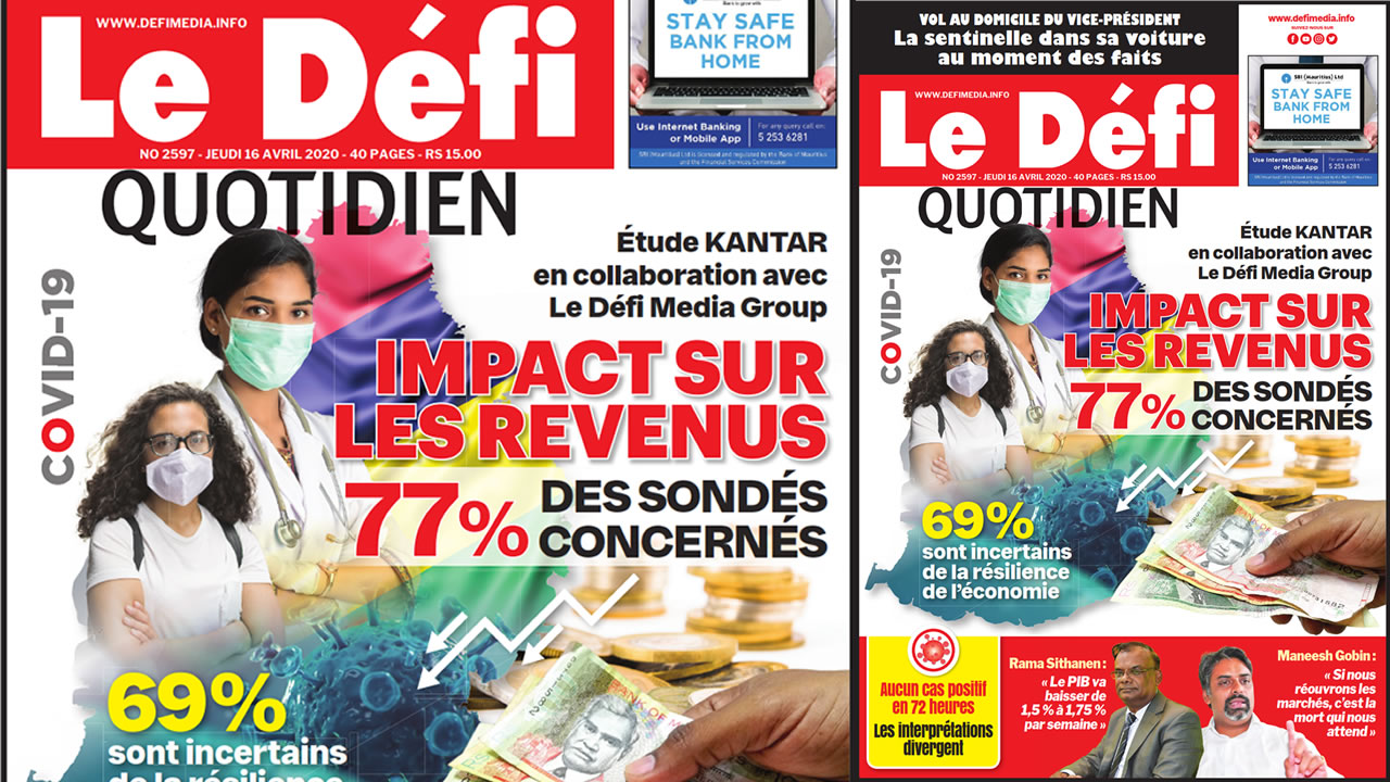 Kantar a mené une enquête auprès des internautes, mais aussi au téléphone afin de toucher un public plus large et plus représentatif de la population mauricienne en ces temps difficiles. 500 interviews ont été menées. Cette enquête est la même que celle effectuée par Kantar dans plus de 50 pays touchés par la pandémie du coronarvirus. L’étude concerne les plus de 18 ans.