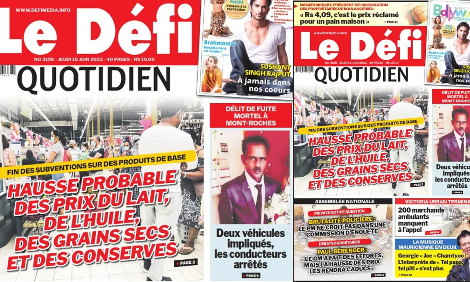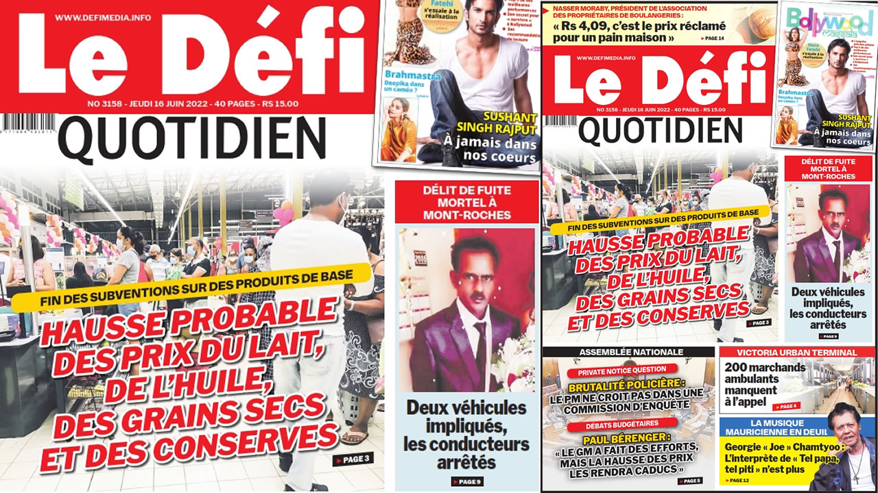 ? Voici la Une du Défi Quotidien. Le journal est en vente à Rs 15 l'exemplaire aux endroits habituels (supermarchés, boutiques, tabagies, superettes). Bonne lecture !