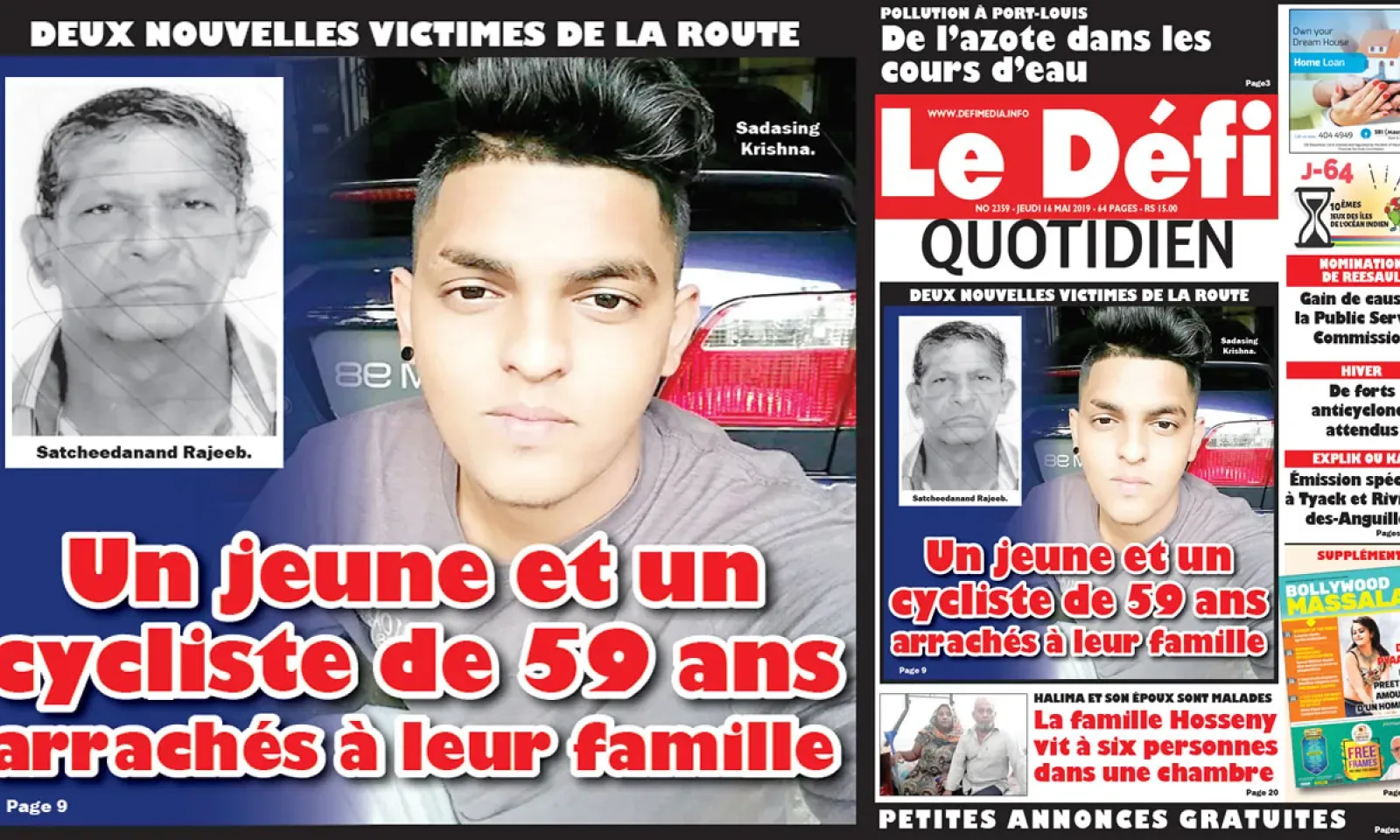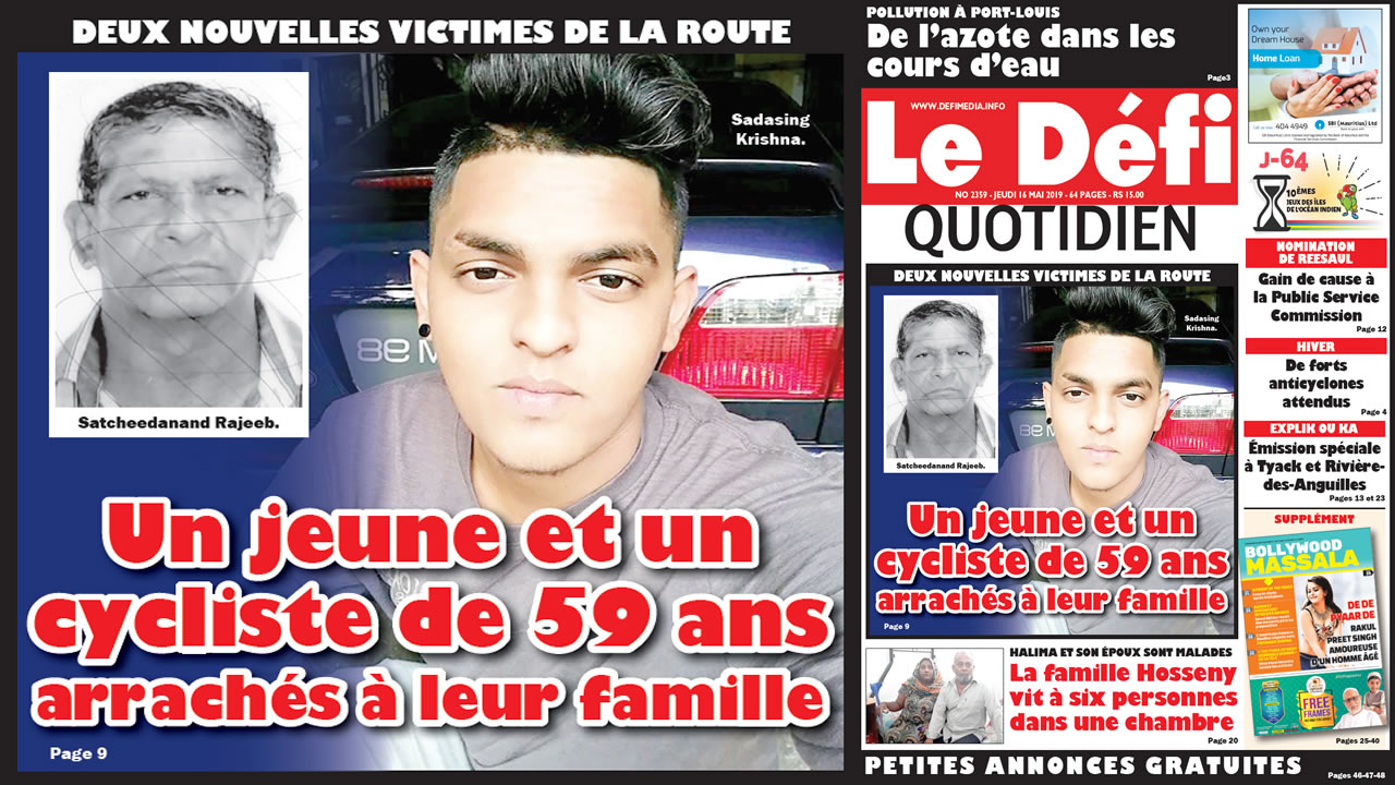 Le sort s’est acharné sur Phalesh Sadasing, 20 ans, et Satcheedanand Rajeeb, 59 ans. Ils ont été victimes d’accident de la route mardi soir à Triolet, et lundi à Laventure, respectivement. Les deux hommes n’ont pas survécu.
