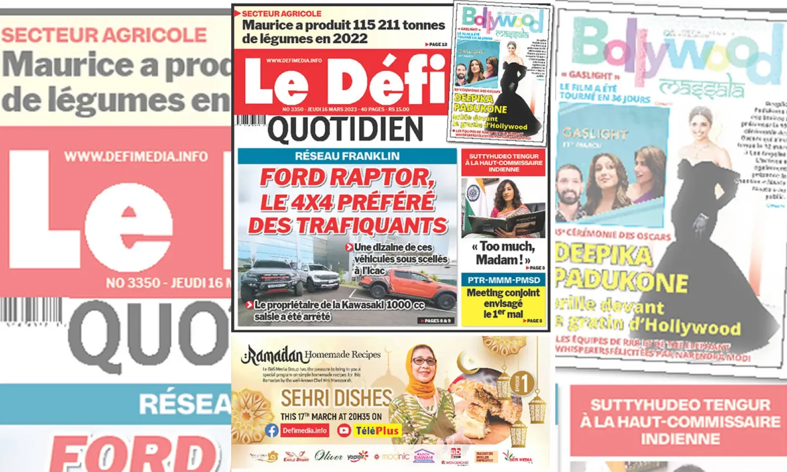 ? Voici la Une du Défi Quotidien. Le journal est en vente à Rs 15 l'exemplaire aux endroits habituels (supermarchés, boutiques, tabagies, superettes). Bonne lecture !