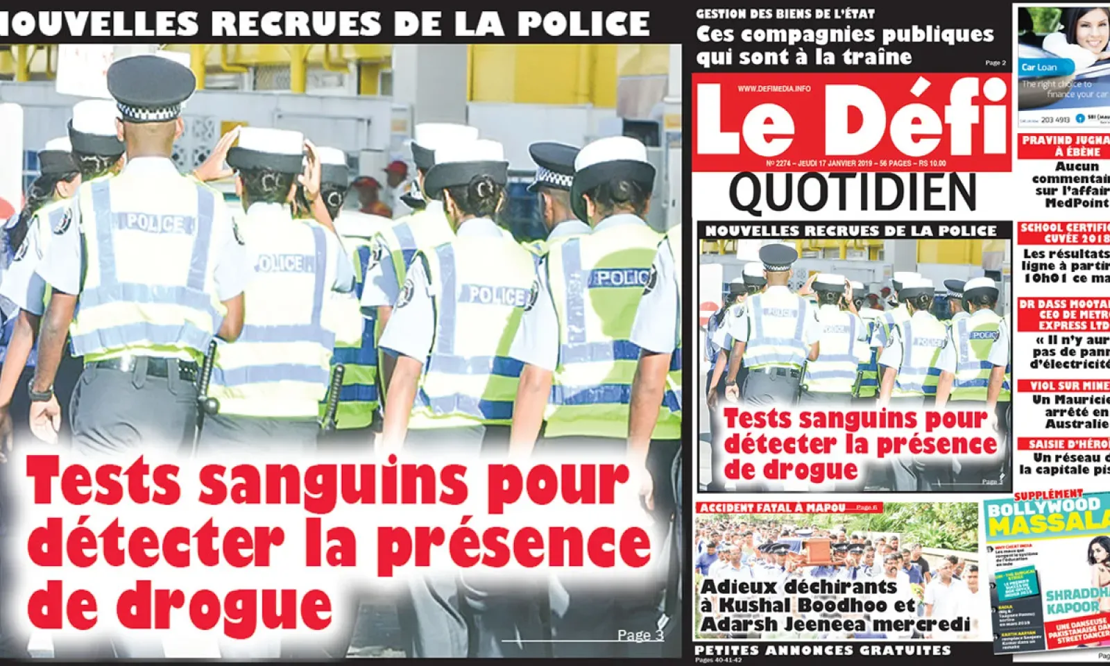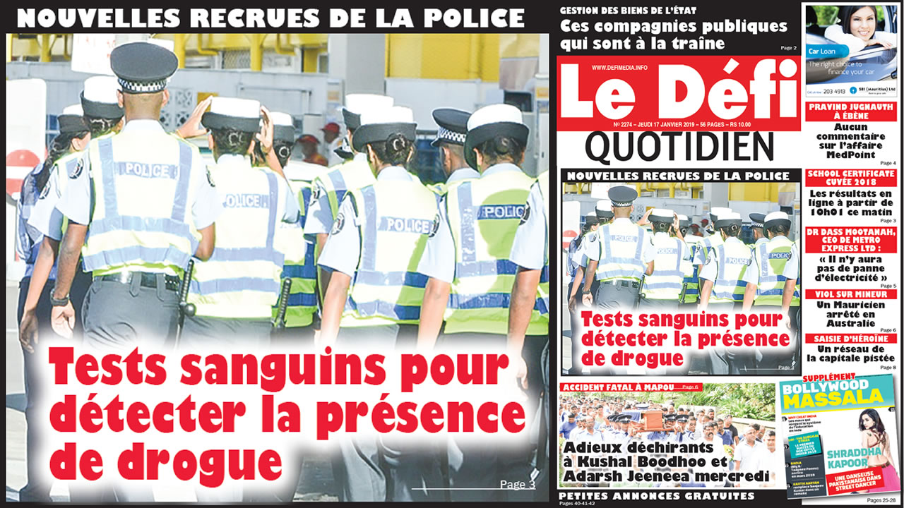 Voici la Une du Defi Quotidien de ce jeudi 17 janvier 2019