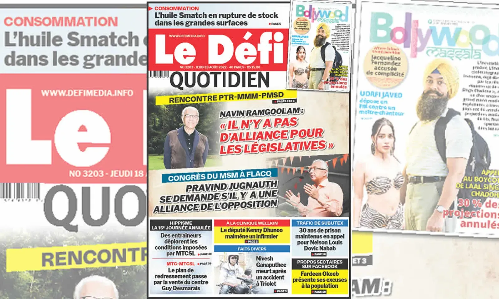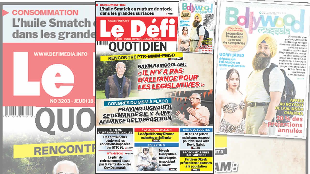 ? Voici la Une du Défi Quotidien. Le journal est en vente à Rs 15 l'exemplaire aux endroits habituels (supermarchés, boutiques, tabagies, superettes). Bonne lecture !