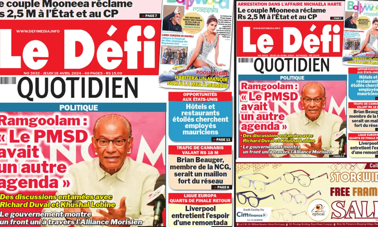 ? Voici la Une du Défi Quotidien. Le journal est en vente à Rs 15 l'exemplaire aux endroits habituels (supermarchés, boutiques, tabagies, superettes). Bonne lecture !