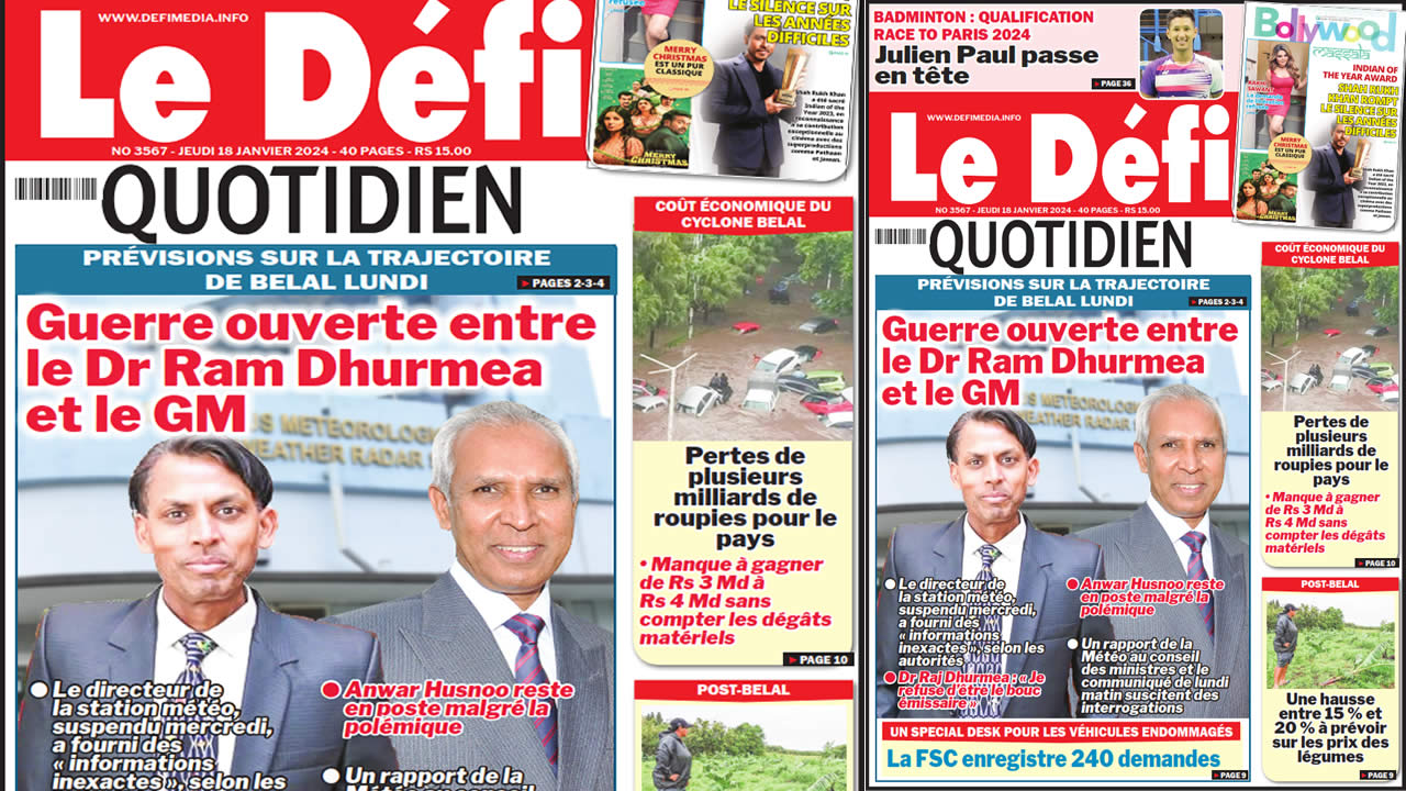 ? Voici la Une du Défi Quotidien. Le journal est en vente à Rs 15 l'exemplaire aux endroits habituels (supermarchés, boutiques, tabagies, superettes). Bonne lecture !