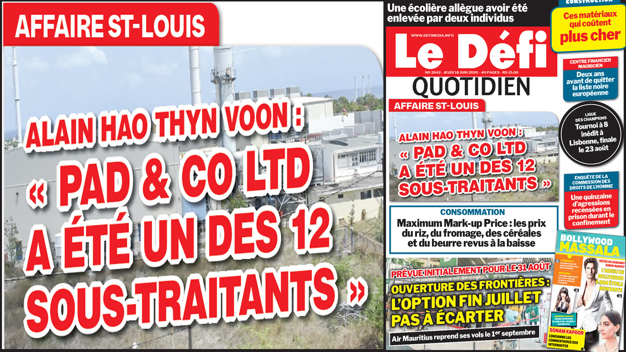 Premier ministre adjoint et ministre des Services publics. Cela dans le sillage de la controverse autour du projet de développement de la centrale thermique de St-Louis. Alain Hao Thyn Voon, directeur de PAD & CO Ltd, tient à faire ressortir que sa compagnie figure parmi « une douzaine de sous-traitants sur ce projet ».