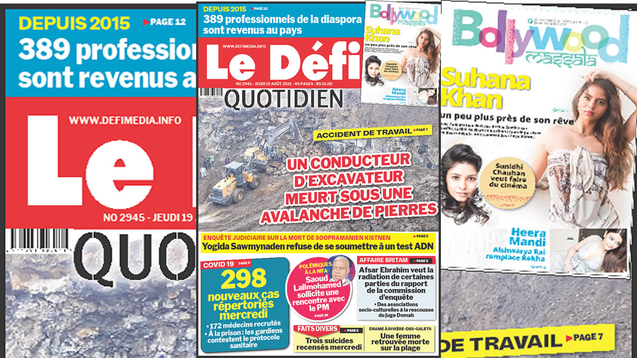 ? Voici la Une du Défi Quotidien. Le journal est en vente à Rs 15 l'exemplaire aux endroits habituels (supermarchés, boutiques, tabagies, superettes). Bonne lecture !