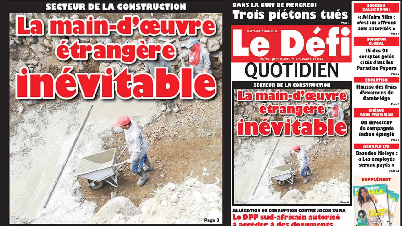 Voici la Une du Defi Quotidien de ce jeudi 19 avril