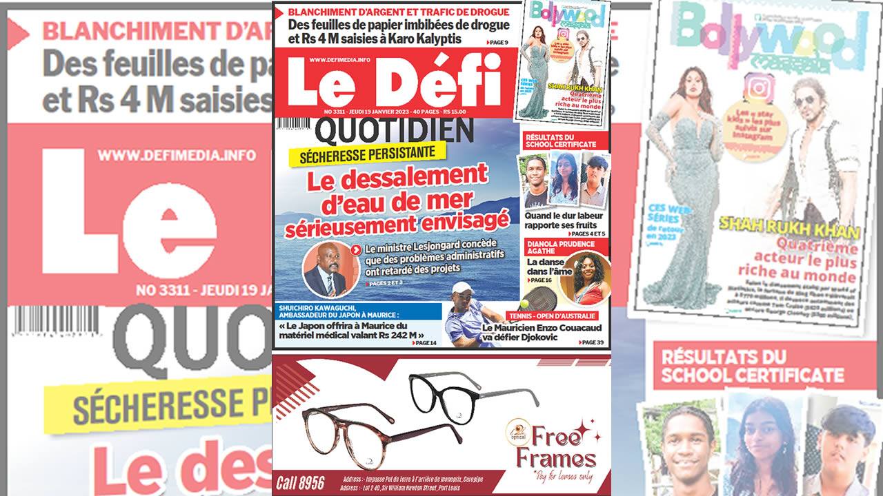 ? Voici la Une du Défi Quotidien. Le journal est en vente à Rs 15 l'exemplaire aux endroits habituels (supermarchés, boutiques, tabagies, superettes). Bonne lecture !