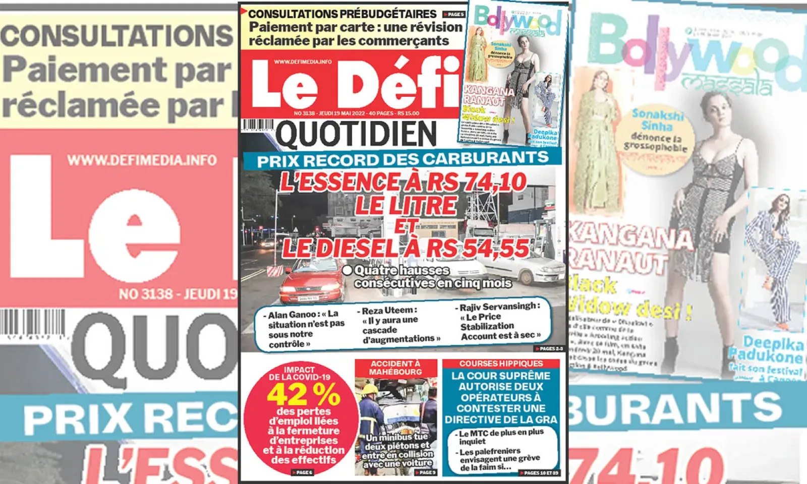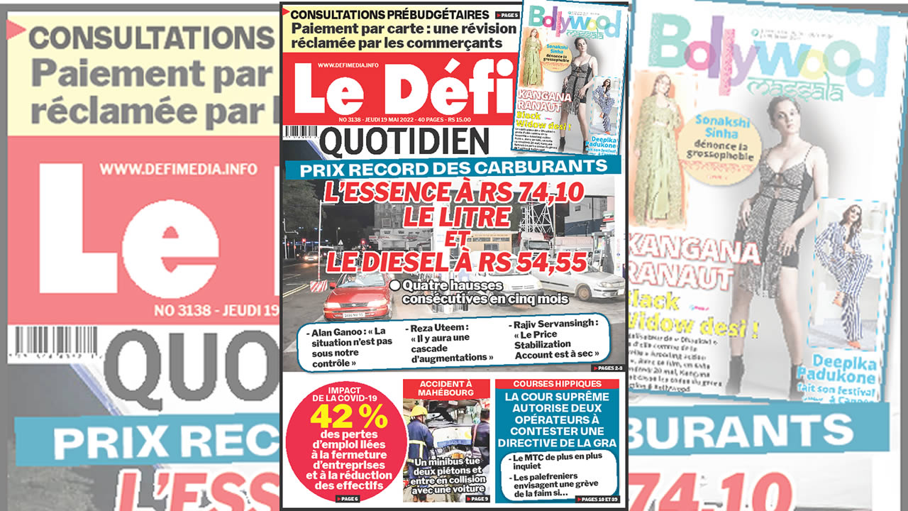 ? Voici la Une du Défi Quotidien. Le journal est en vente à Rs 15 l'exemplaire aux endroits habituels (supermarchés, boutiques, tabagies, superettes). Bonne lecture !