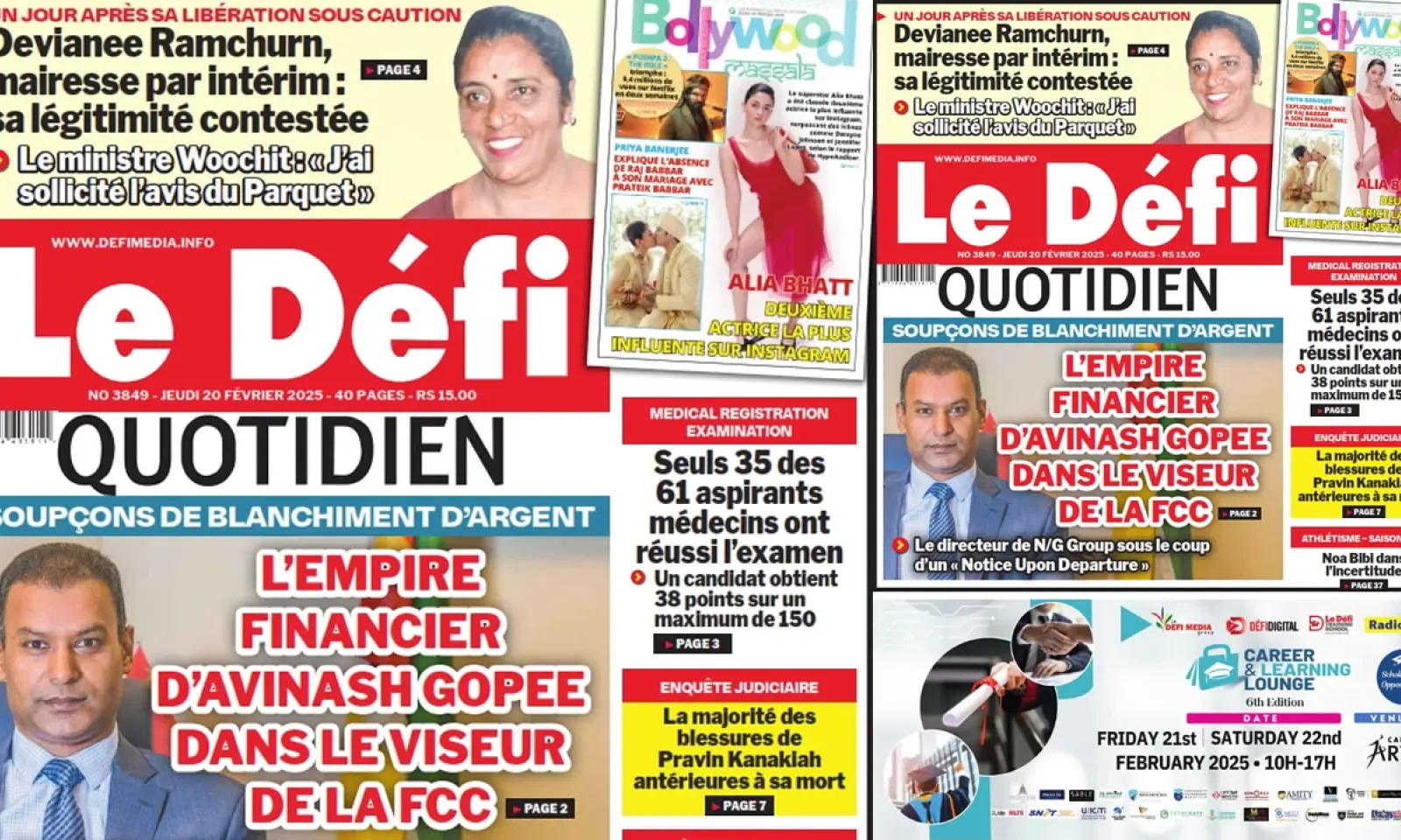 ? Voici la Une du Défi Quotidien. Le journal est en vente à Rs 15 l'exemplaire aux endroits habituels (supermarchés, boutiques, tabagies, superettes). Bonne lecture !