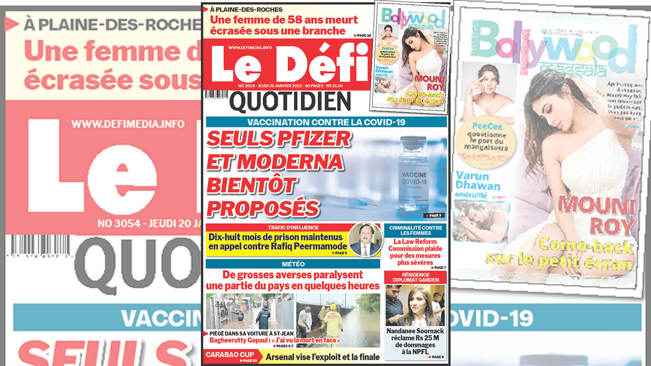 ? Voici la Une du Défi Quotidien. Le journal est en vente à Rs 15 l'exemplaire aux endroits habituels (supermarchés, boutiques, tabagies, superettes). Bonne lecture !