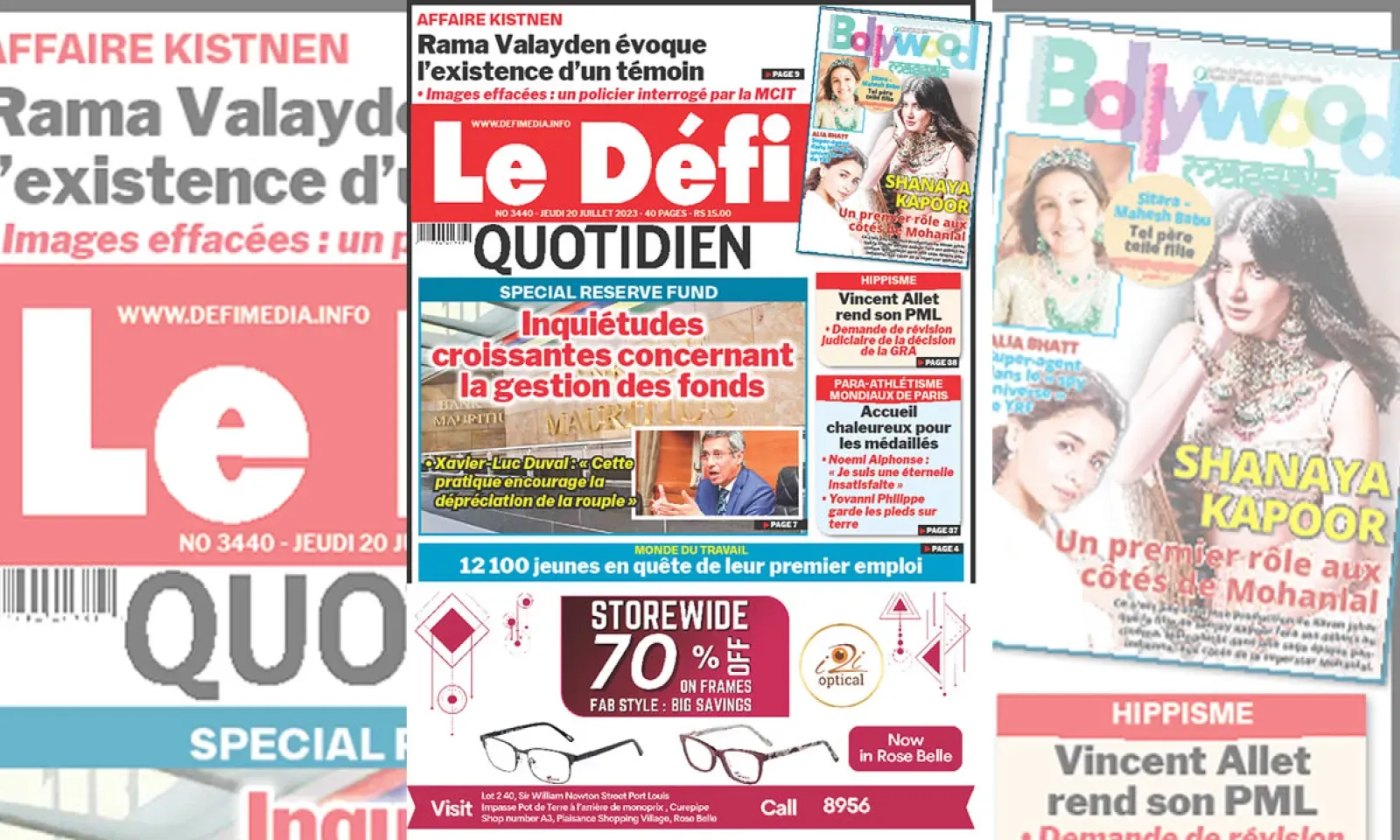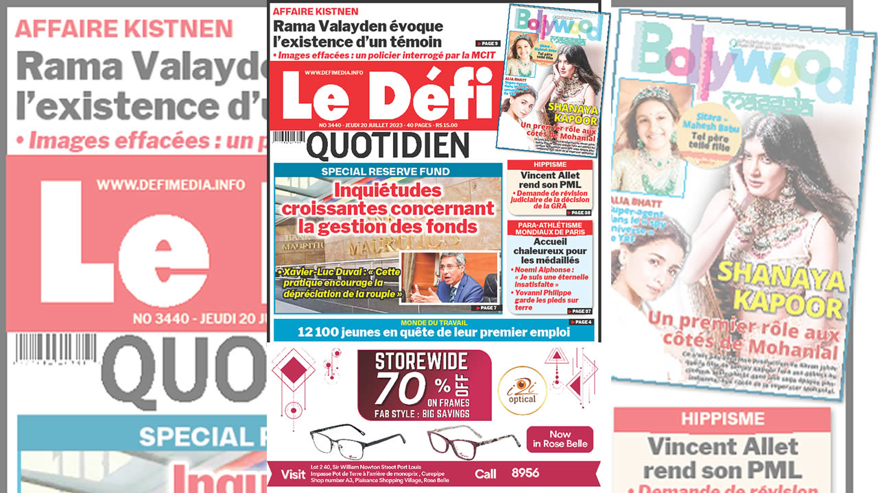 ? Voici la Une du Défi Quotidien. Le journal est en vente à Rs 15 l'exemplaire aux endroits habituels (supermarchés, boutiques, tabagies, superettes). Bonne lecture !