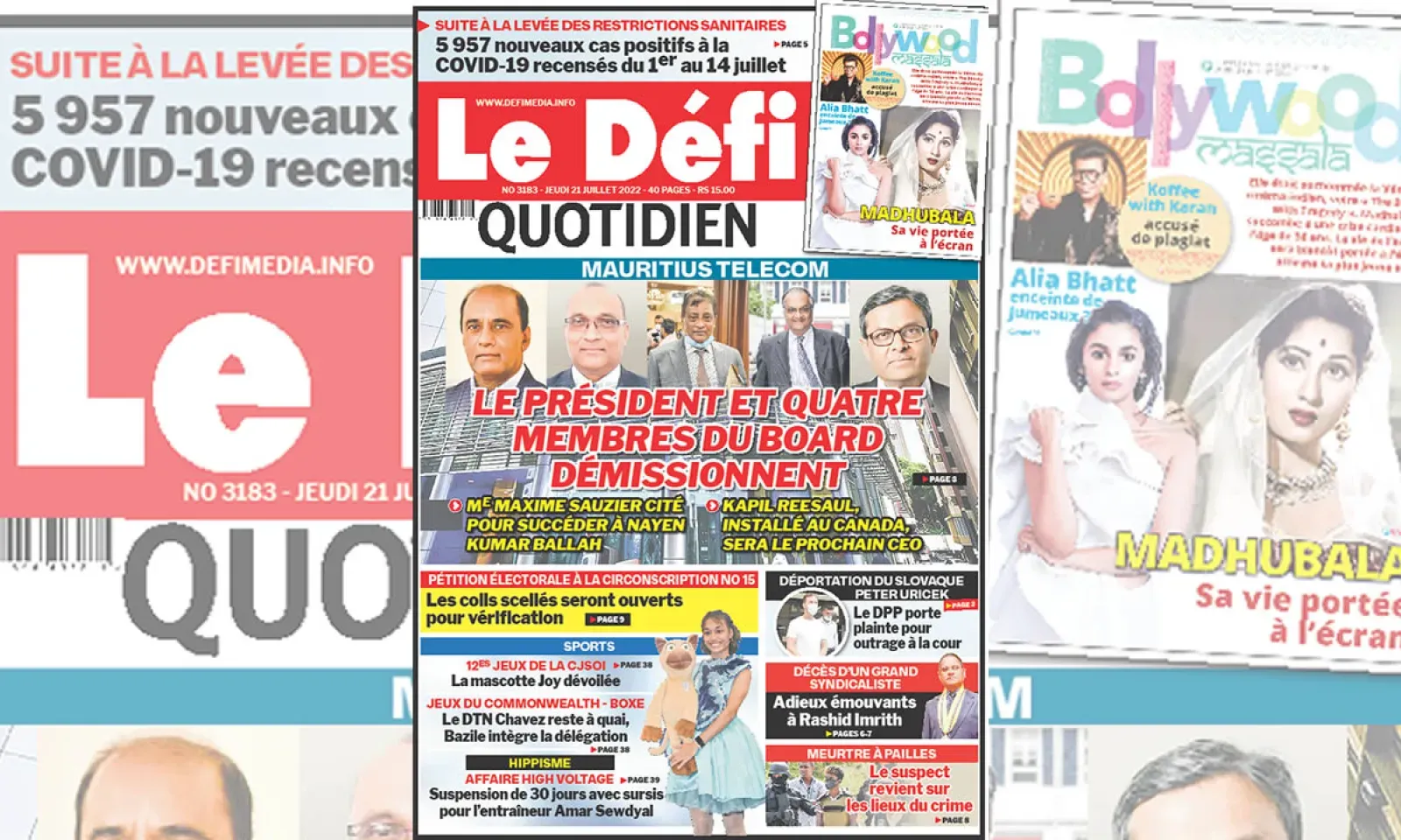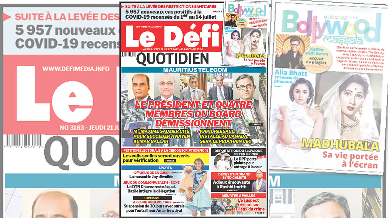 ? Voici la Une du Défi Quotidien. Le journal est en vente à Rs 15 l'exemplaire aux endroits habituels (supermarchés, boutiques, tabagies, superettes). Bonne lecture !