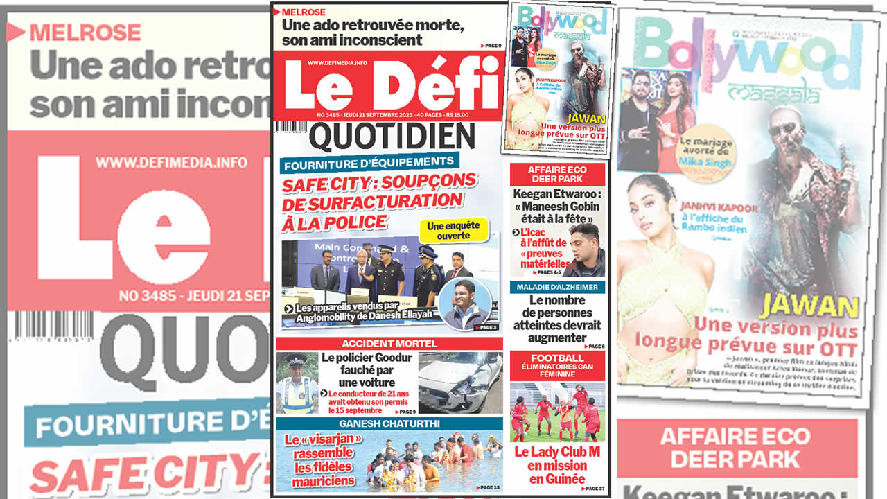 ? Voici la Une du Défi Quotidien. Le journal est en vente à Rs 15 l'exemplaire aux endroits habituels (supermarchés, boutiques, tabagies, superettes). Bonne lecture !
