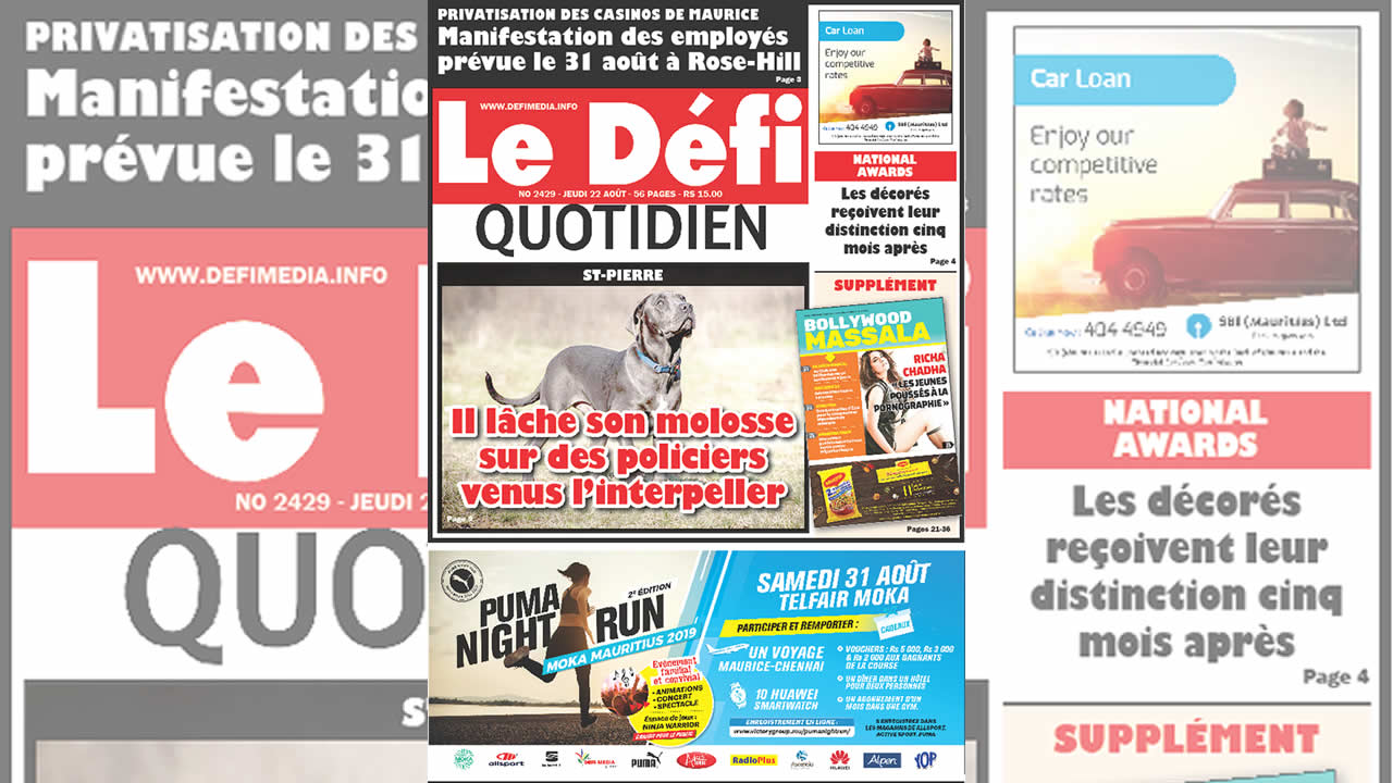 Les employés des casinos de Maurice se proposent de descendre dans la rue à Rose-Hill pour manifester contre lamenace de la privatisation des maisons de jeu. Une mesure annoncée par le gouvernement dans le Budget 2019/2020et reprise au Parlement le 9 juillet par le Premier ministre, Pravind Jugnauth. Sollicité par Le Défi Quotidien, laState Investment Corporation (SIC), qui gère les casinos de Maurice, indique que l’organisme est « dans l’attented’une décision du gouvernement. » Un homme d’affaires connu dans le domaine des jeux est pressenti pour le rachat des casinos.