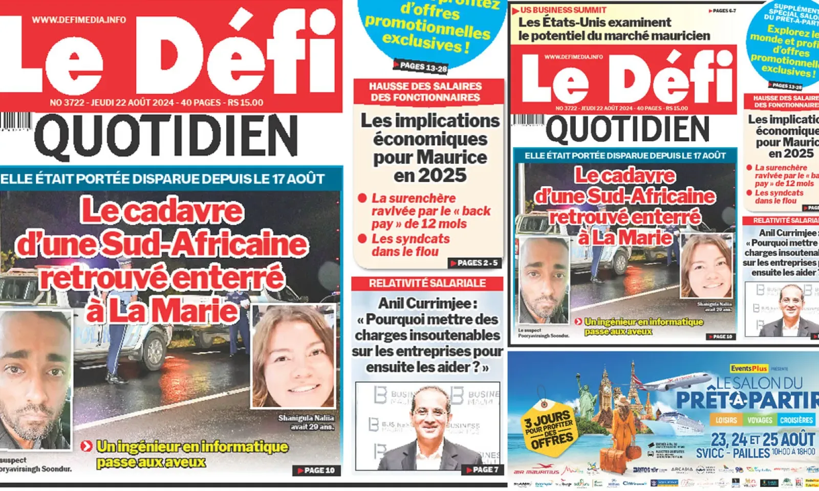 ? Voici la Une du Défi Quotidien. Le journal est en vente à Rs 15 l'exemplaire aux endroits habituels (supermarchés, boutiques, tabagies, superettes). Bonne lecture !