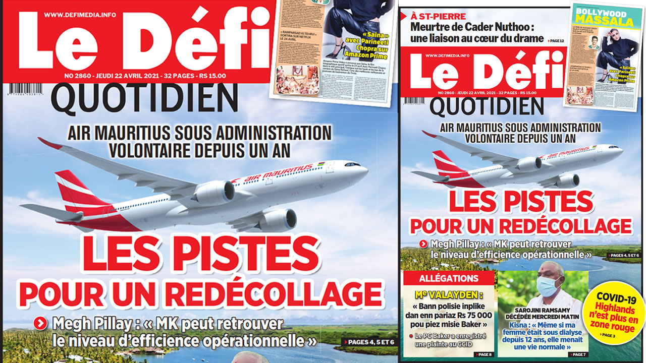 ? Voici la Une du Défi Quotidien. Le journal est en vente à Rs 15 l'exemplaire aux endroits habituels (supermarchés, boutiques, tabagies, superettes). Bonne lecture !