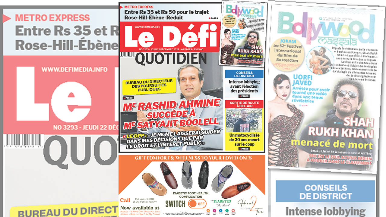 ? Voici la Une du Défi Quotidien. Le journal est en vente à Rs 15 l'exemplaire aux endroits habituels (supermarchés, boutiques, tabagies, superettes). Bonne lecture !