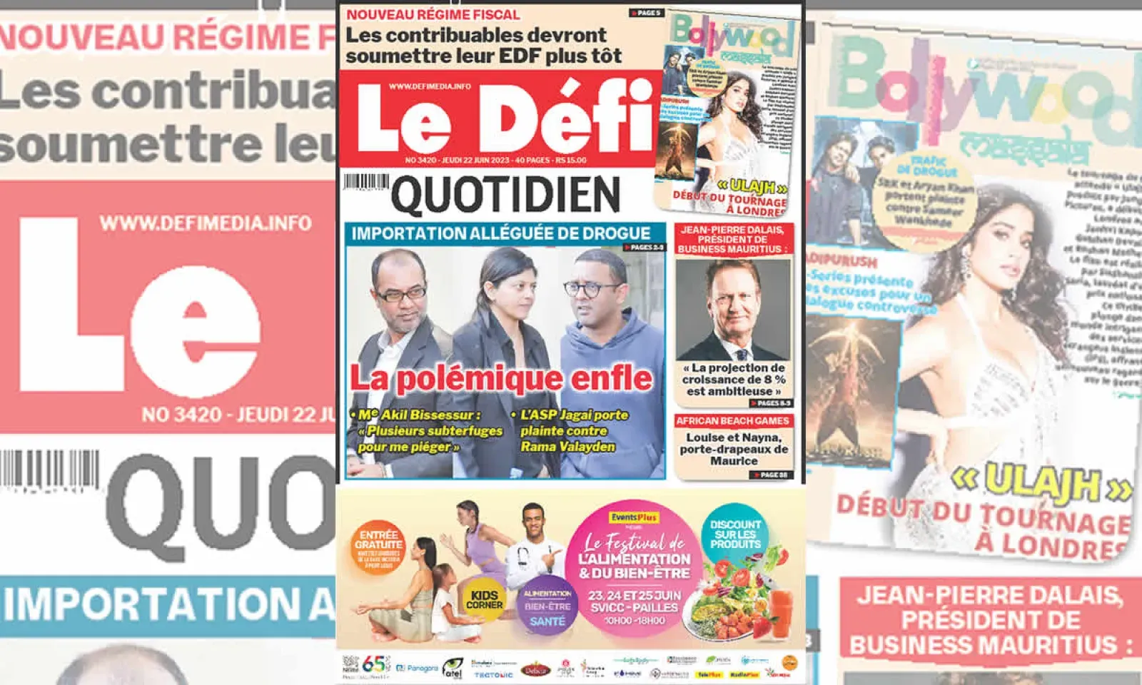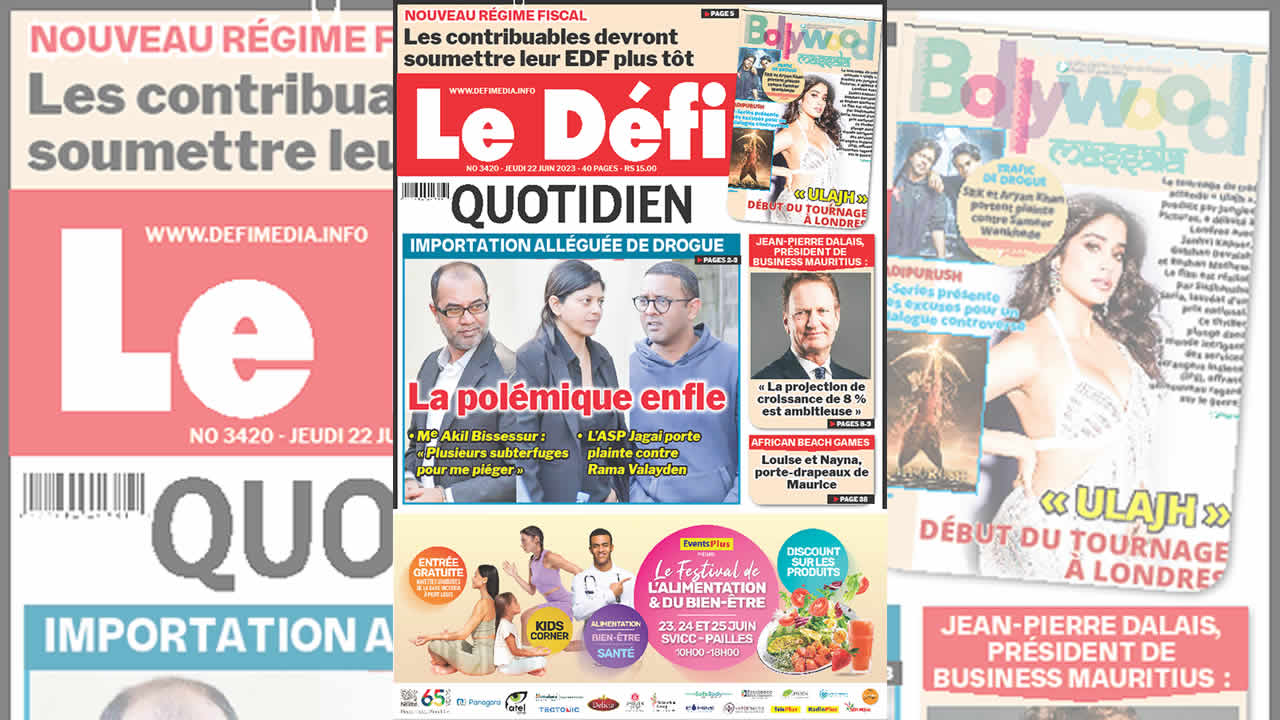 ? Voici la Une du Défi Quotidien. Le journal est en vente à Rs 15 l'exemplaire aux endroits habituels (supermarchés, boutiques, tabagies, superettes). Bonne lecture !
