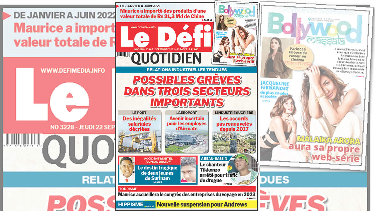 ? Voici la Une du Défi Quotidien. Le journal est en vente à Rs 15 l'exemplaire aux endroits habituels (supermarchés, boutiques, tabagies, superettes). Bonne lecture !