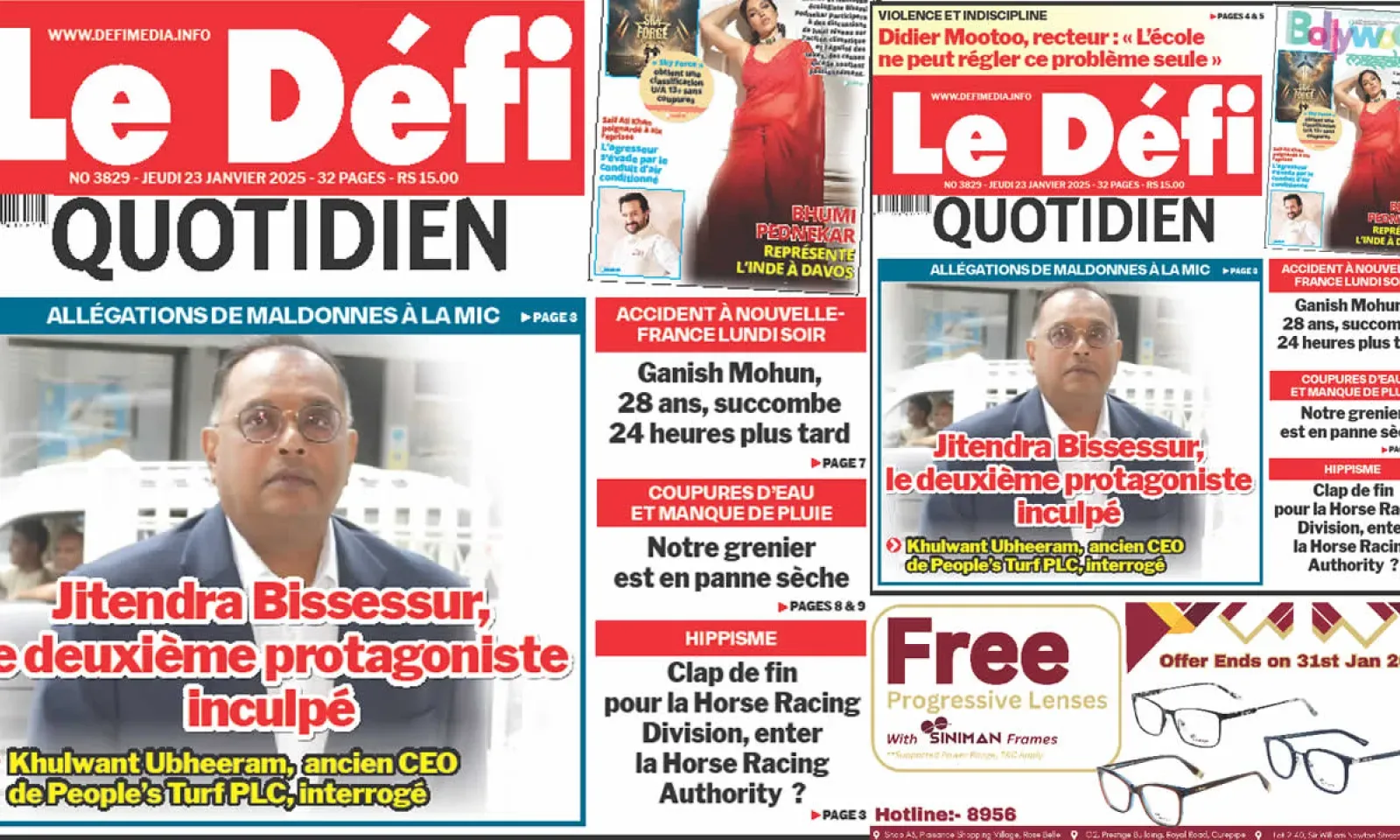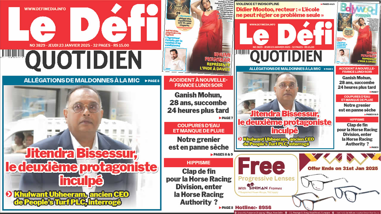 ? Voici la Une du Défi Quotidien. Le journal est en vente à Rs 15 l'exemplaire aux endroits habituels (supermarchés, boutiques, tabagies, superettes). Bonne lecture !