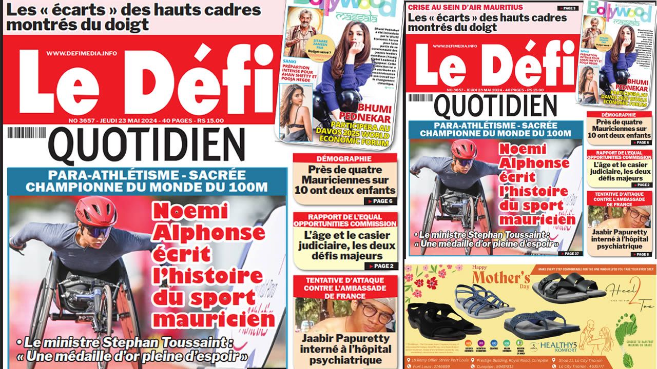 ? Voici la Une du Défi Quotidien. Le journal est en vente à Rs 15 l'exemplaire aux endroits habituels (supermarchés, boutiques, tabagies, superettes). Bonne lecture !