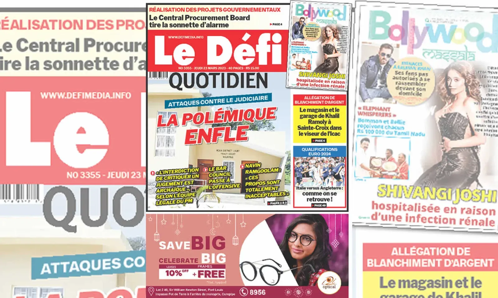 ? Voici la Une du Défi Quotidien. Le journal est en vente à Rs 15 l'exemplaire aux endroits habituels (supermarchés, boutiques, tabagies, superettes). Bonne lecture !