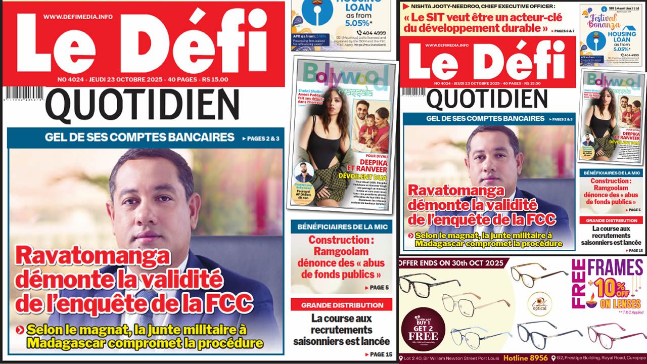 ? Voici la Une du Défi Quotidien. Le journal est en vente à Rs 15 l'exemplaire aux endroits habituels (supermarchés, boutiques, tabagies, superettes). Bonne lecture !