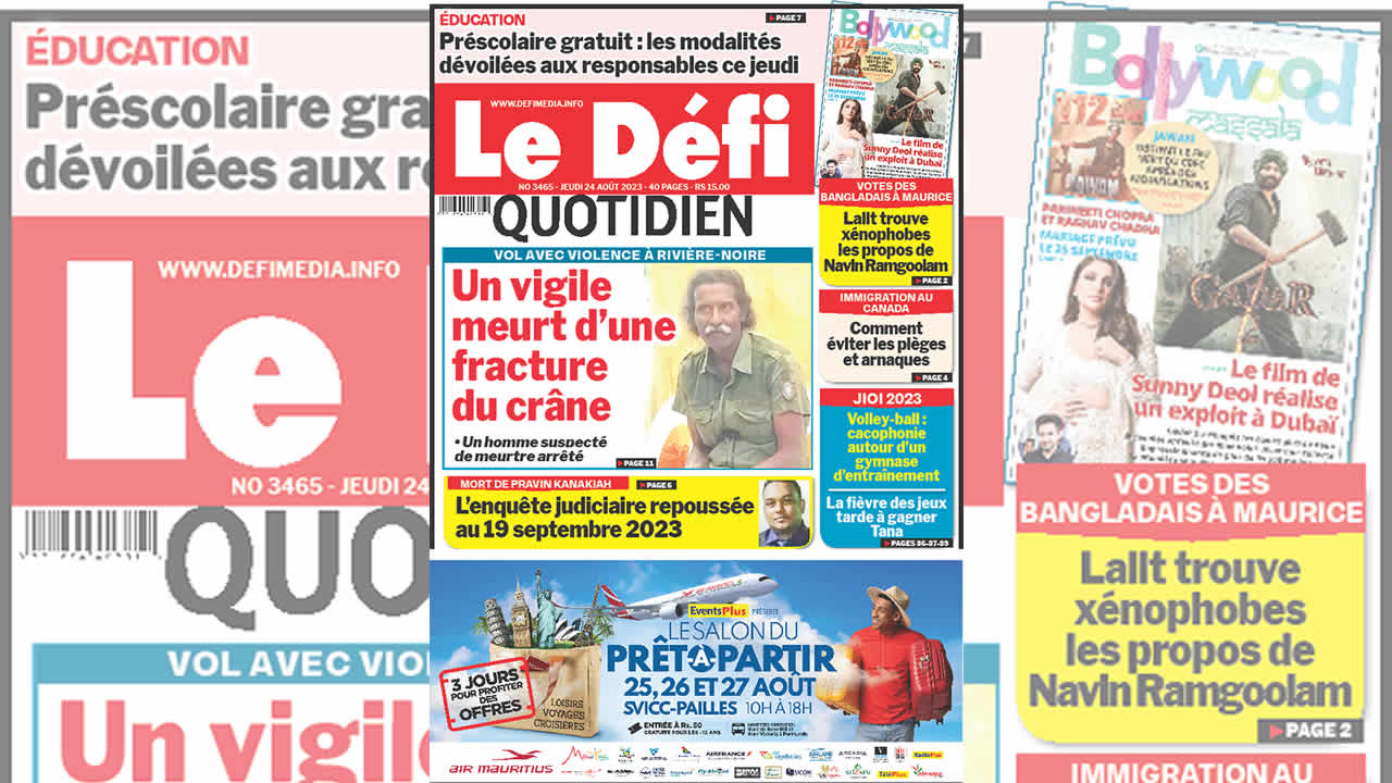 Voici la une du Défi Quotidien de ce Jeudi 24 Août 2023