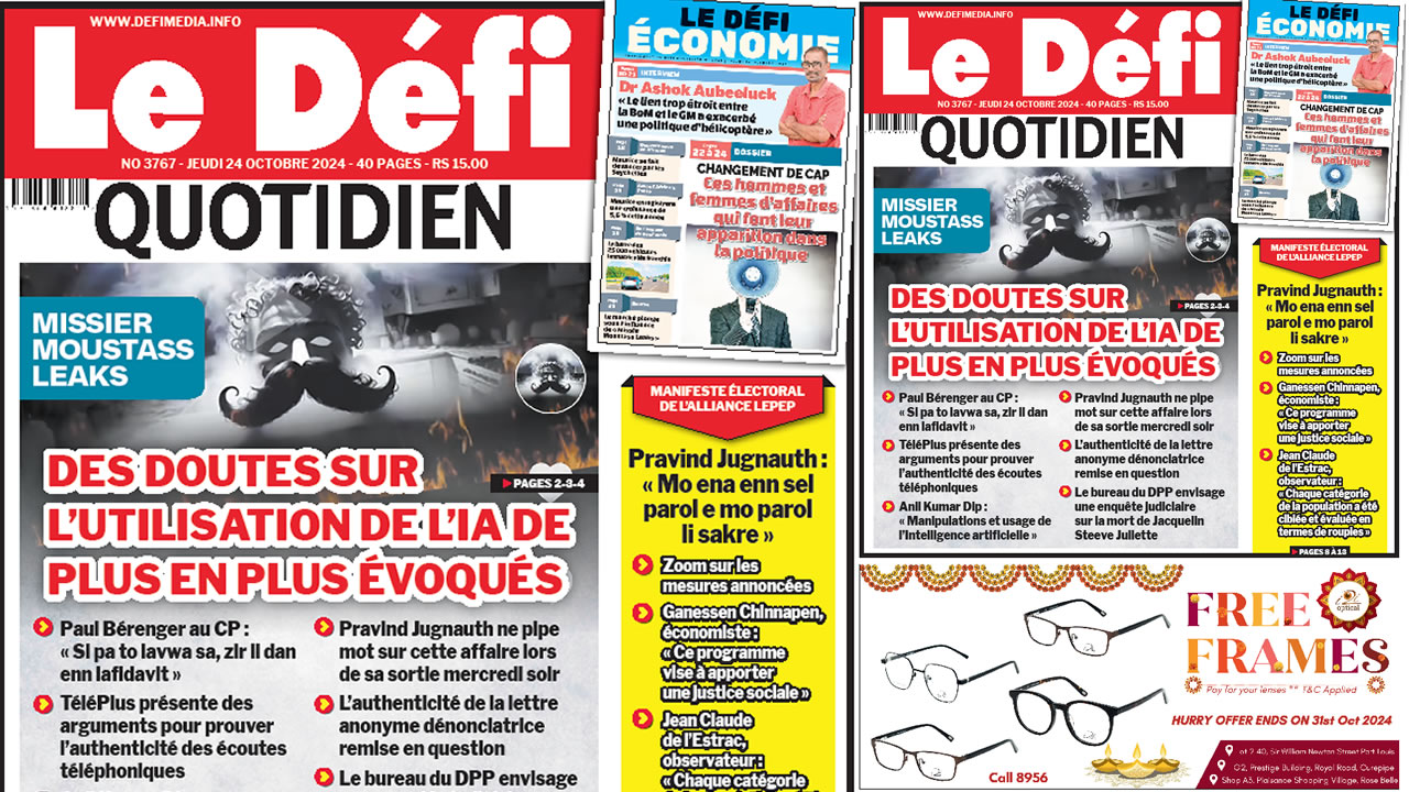 ? Voici la Une du Défi Quotidien. Le journal est en vente à Rs 15 l'exemplaire aux endroits habituels (supermarchés, boutiques, tabagies, superettes). Bonne lecture !