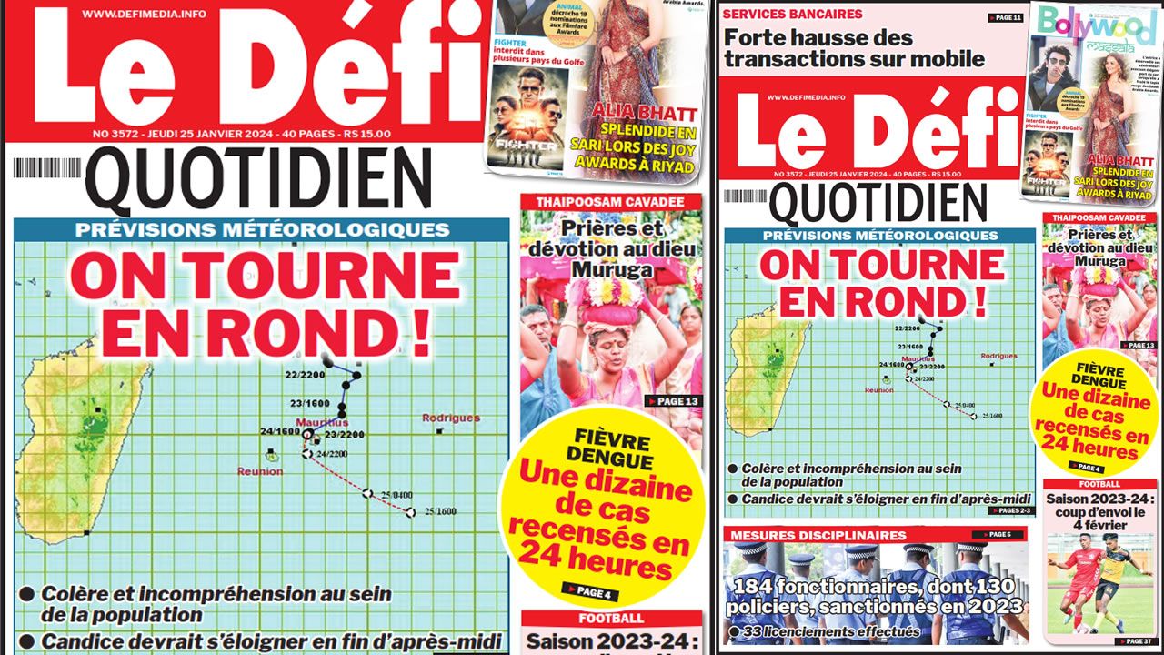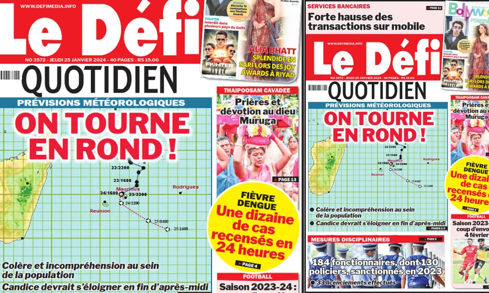 ? Voici la Une du Défi Quotidien. Le journal est en vente à Rs 15 l'exemplaire aux endroits habituels (supermarchés, boutiques, tabagies, superettes). Bonne lecture !