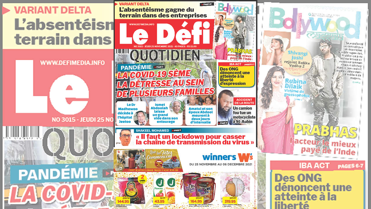 ? Voici la Une du Défi Quotidien. Le journal est en vente à Rs 15 l'exemplaire aux endroits habituels (supermarchés, boutiques, tabagies, superettes). Bonne lecture !