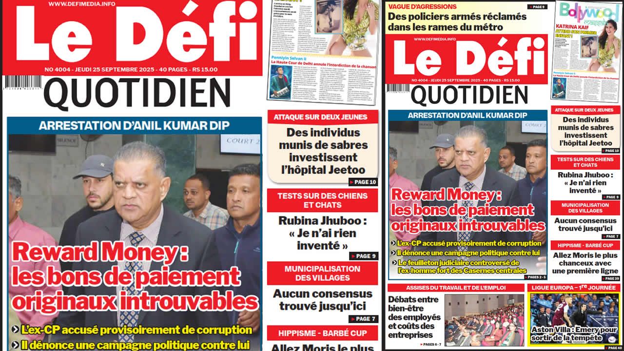 ? Voici la Une du Défi Quotidien. Le journal est en vente à Rs 15 l'exemplaire aux endroits habituels (supermarchés, boutiques, tabagies, superettes). Bonne lecture !